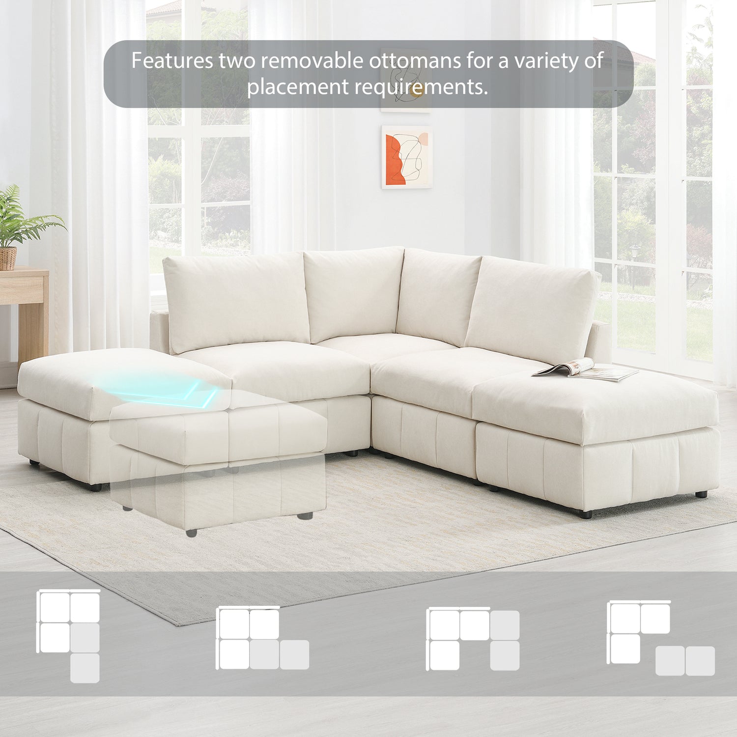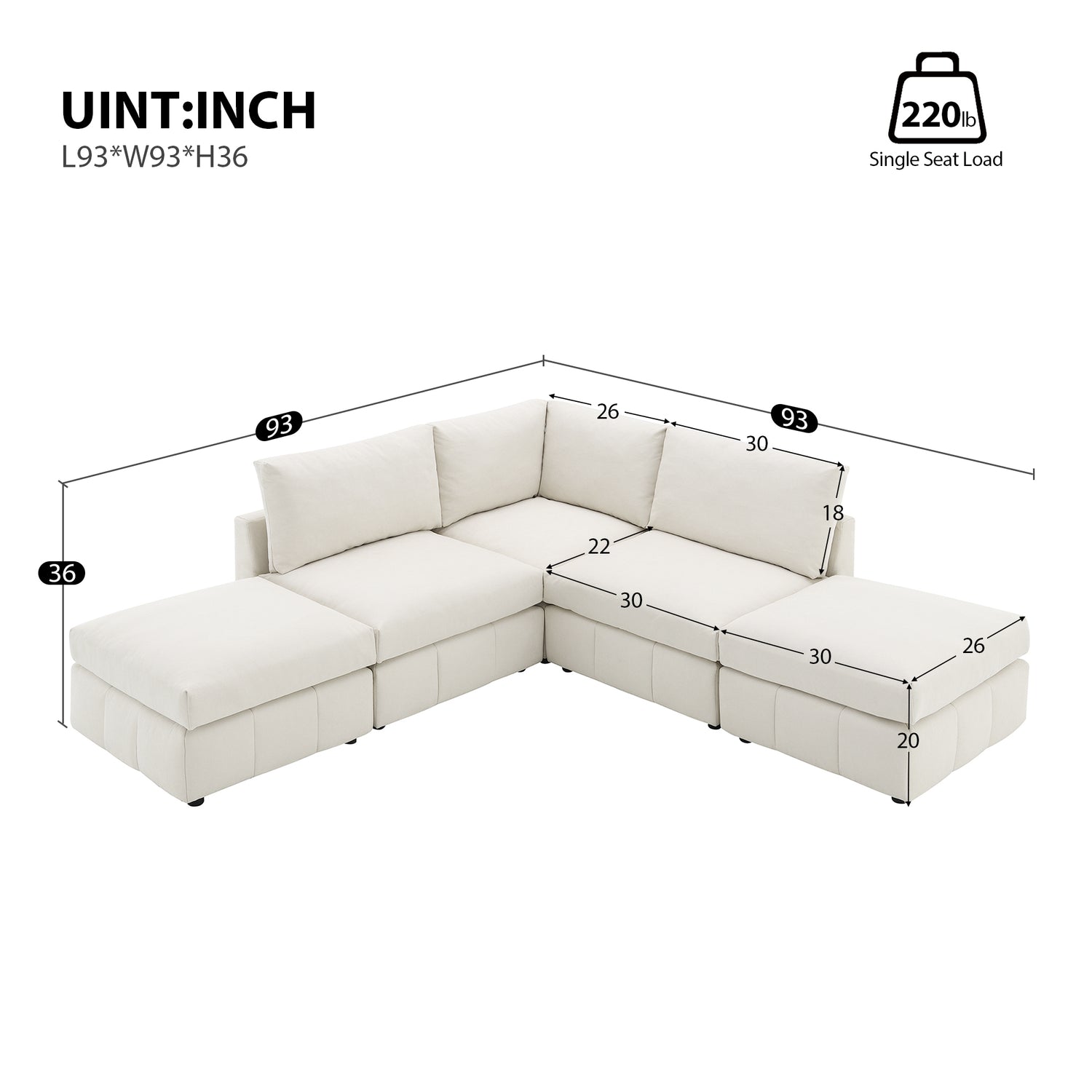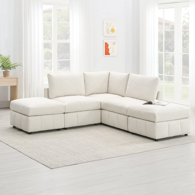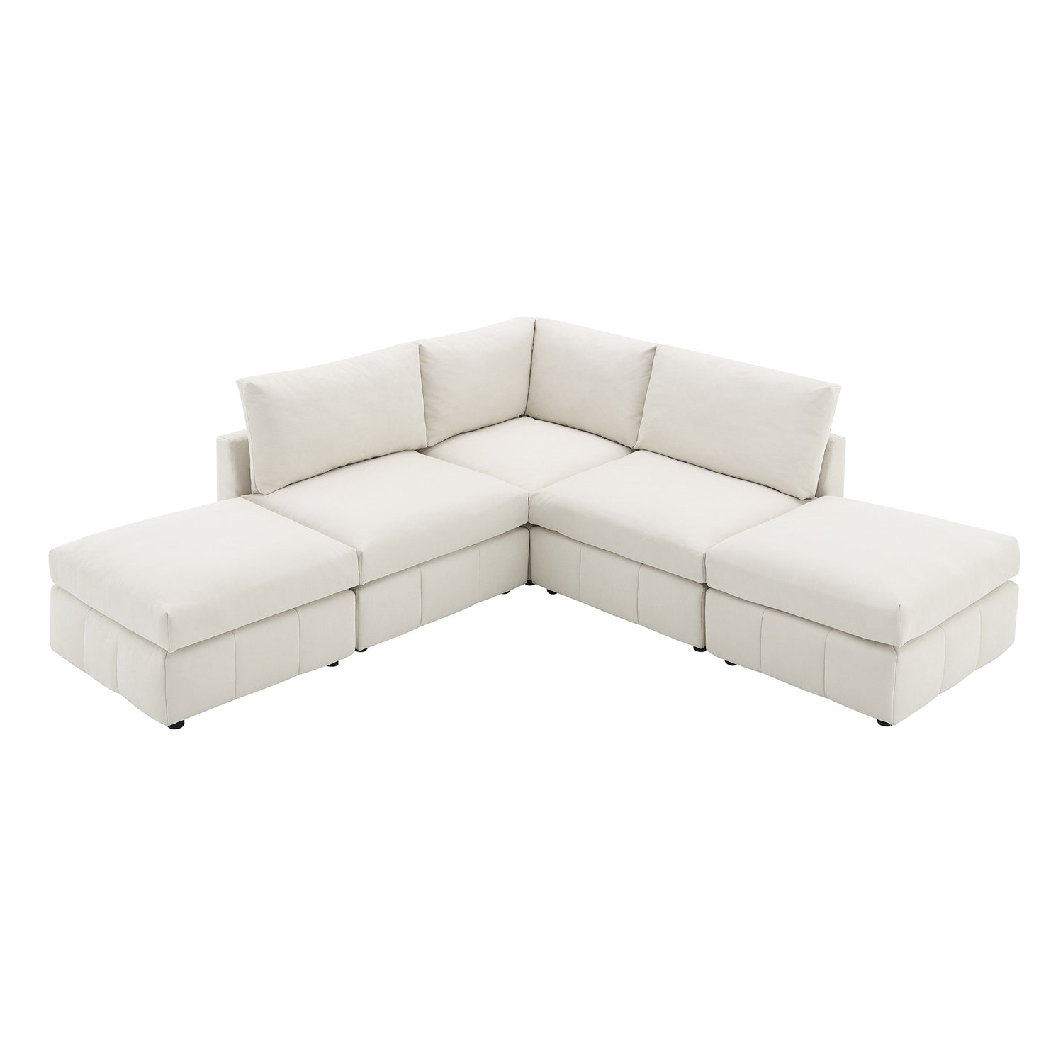 [VIDEO provided][New]93"Modern Sectional Sofa with Vertical Stripes,5-Seat Armless Couch Set with Convertible Ottomans,Various Combinations,L-Shape Indoor Furniture for Living Room,Apartment, 2 Colors