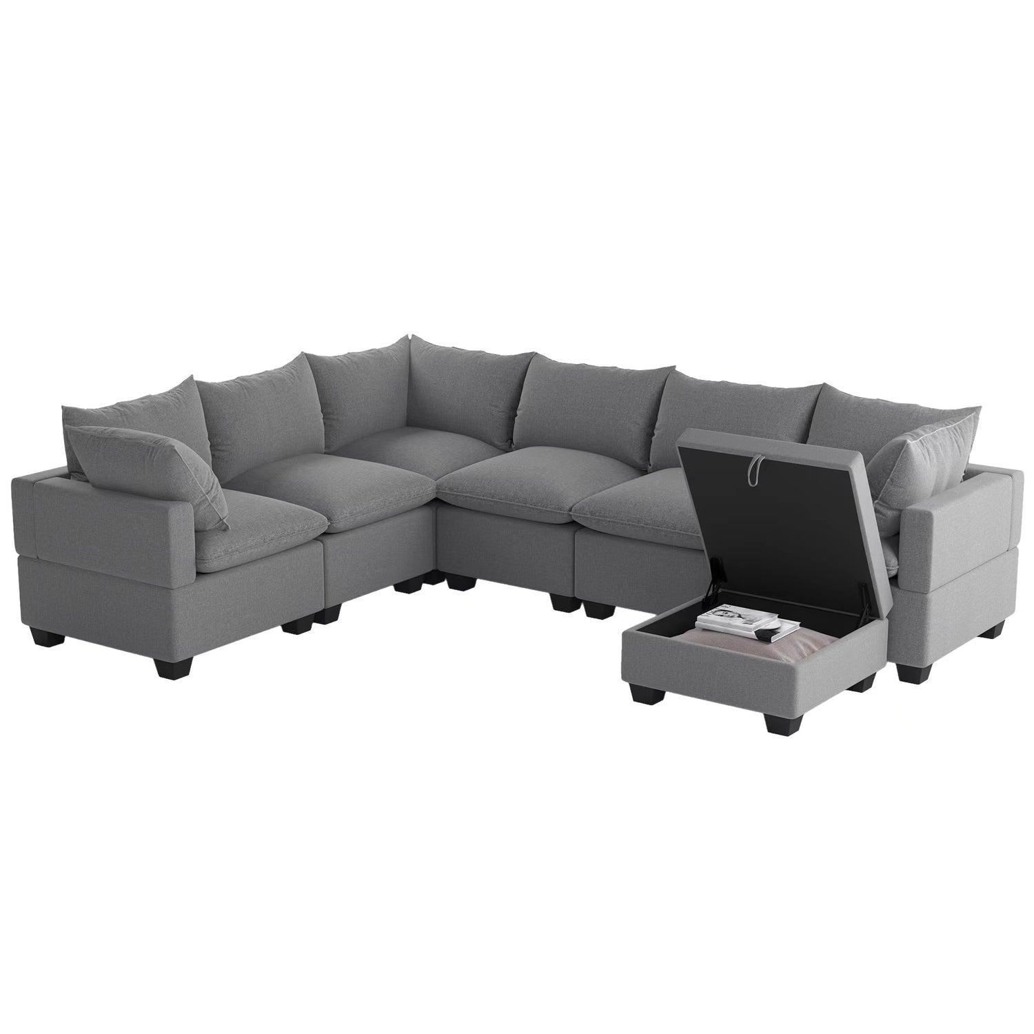 [VIDEO provided][New] 120*93" Modern U Shape Modular Sofa with Storage Ottoman,Luxury 7 Seat Sectional Couch Set with 2 Pillows Included,Freely Combinable Indoor Funiture for Living Room, Apartment is backordered and will ship as soon as it is back in stock.