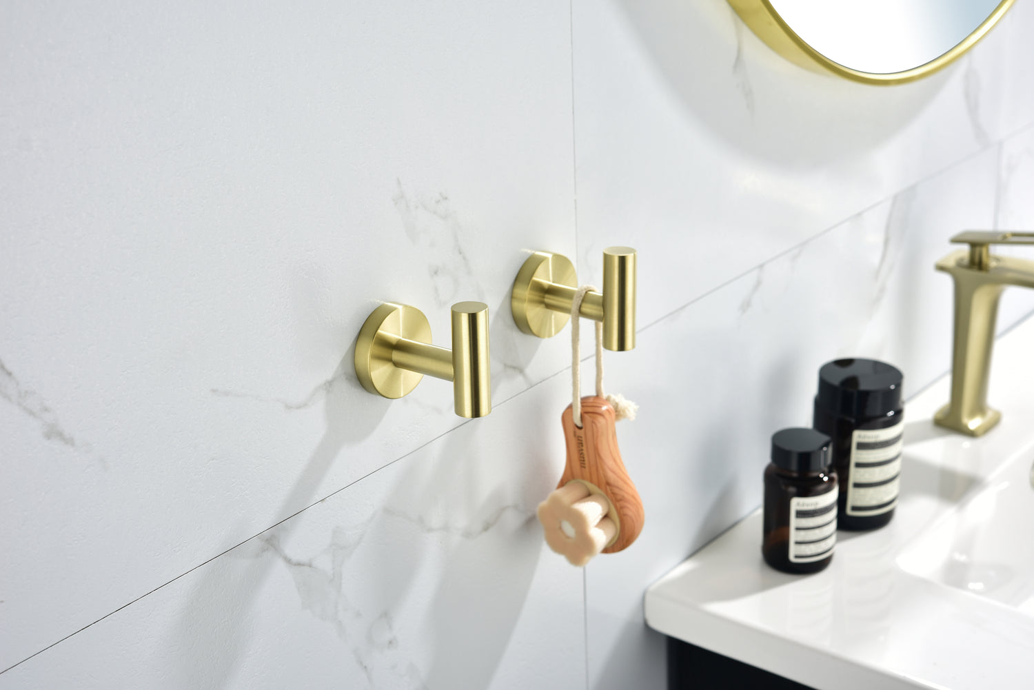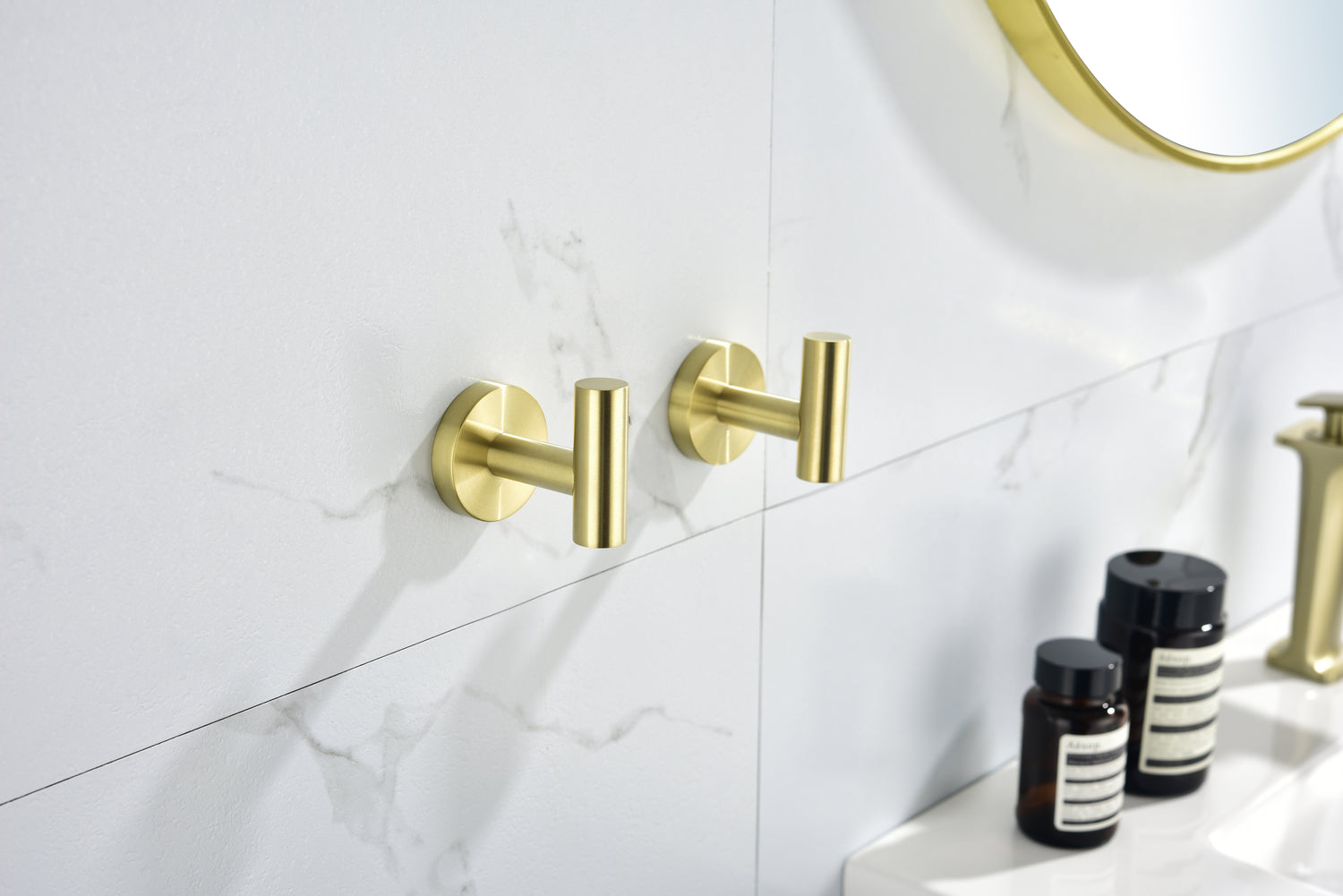 6-Pieces Brushed Gold Bathroom Hardware Set SUS304 Stainless Steel Round Wall Mounted Includes Hand Towel Bar,Toilet Paper Holder,Robe Towel Hooks,Bathroom Accessories Kit