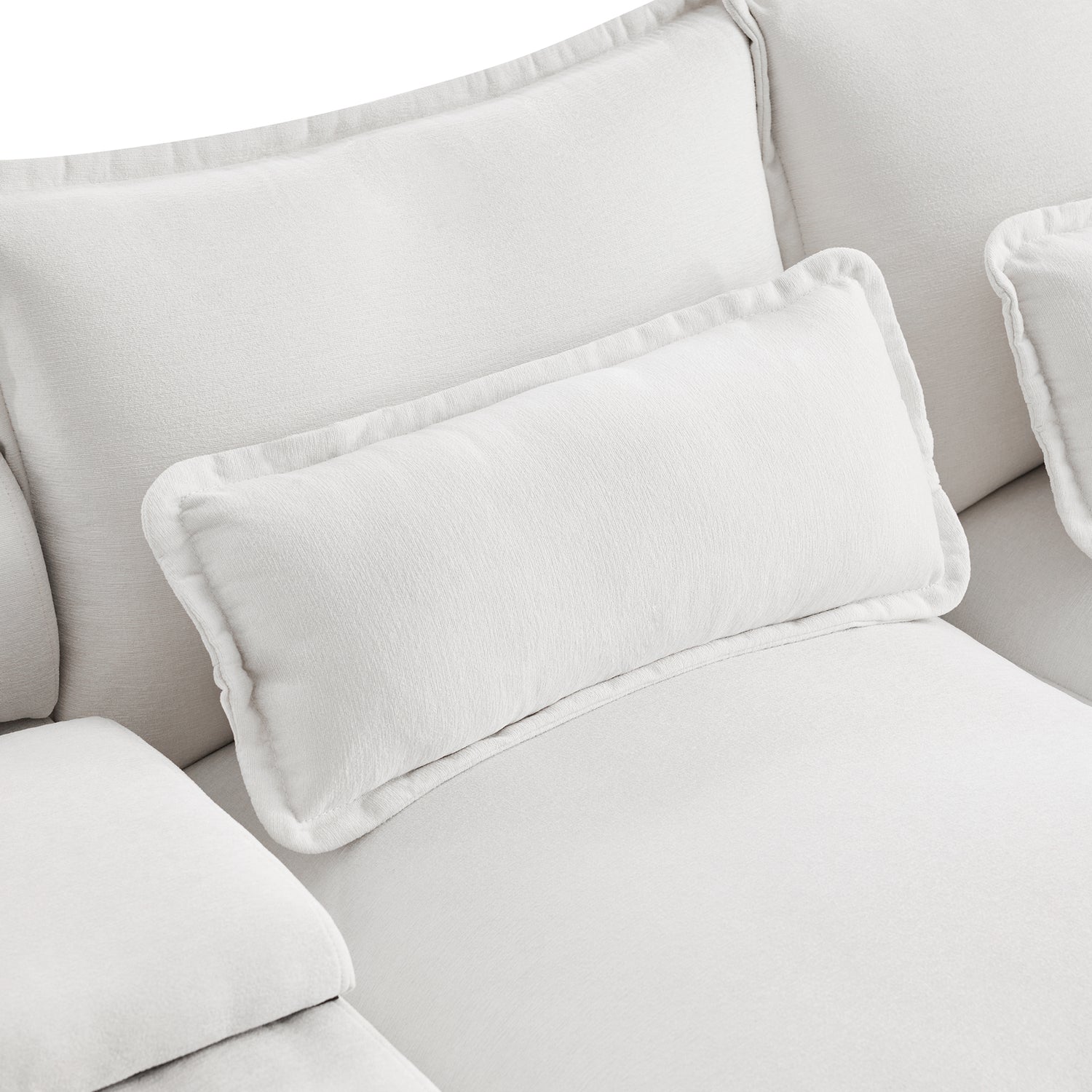 - Comfortable design: The white sofa is made of high-quality chenille, which is soft, comfortable and durable.Armrest pockets on both sides of the sofa can relax your head, and there are also 4 lumbar pillows to give better lumbar support, making it easy to adjust your posture and reduce discomfort and fatigue.
