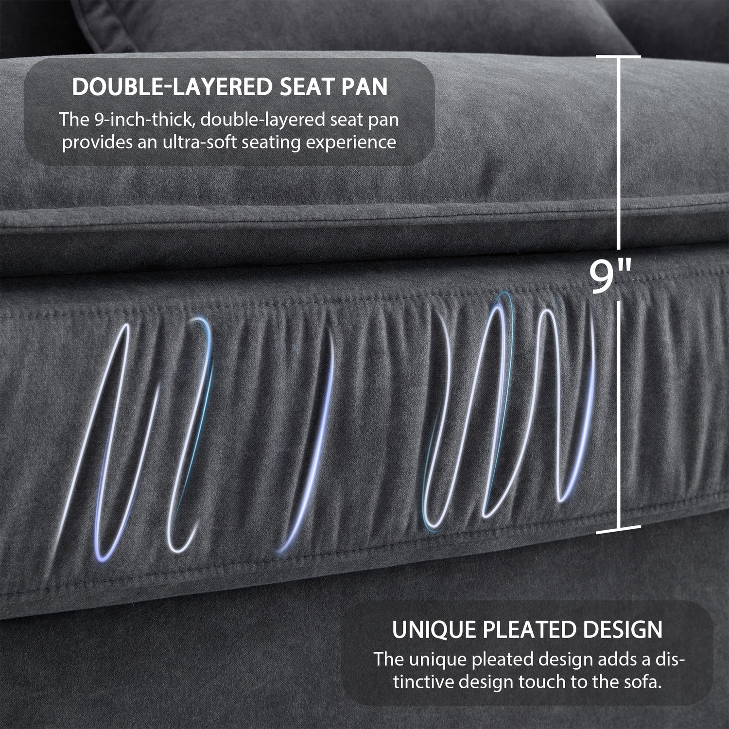 - High-Quality: The sofa features a sturdy wood frame that can hold up to 275 lbs/seat, making it unencumbered for everyday use. It is also equipped with plastic legs, which are stable and durable, not easy to scratch the floor.