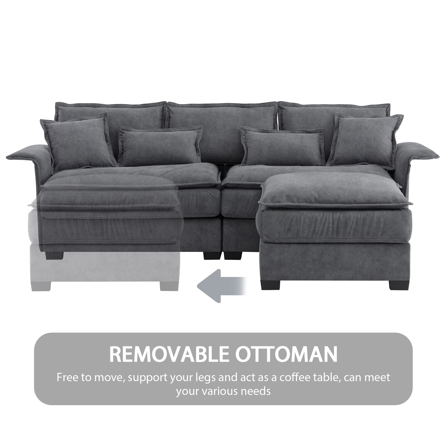 [VIDEO provided][New]95*66"Oversized Luxury Sectional Sofa with Bentwood Armrests,4 seat Upholstered Indoor Furniture with Double Cushions,L Shape Couch with Ottoman for Living Room,Apartment,3 Colors