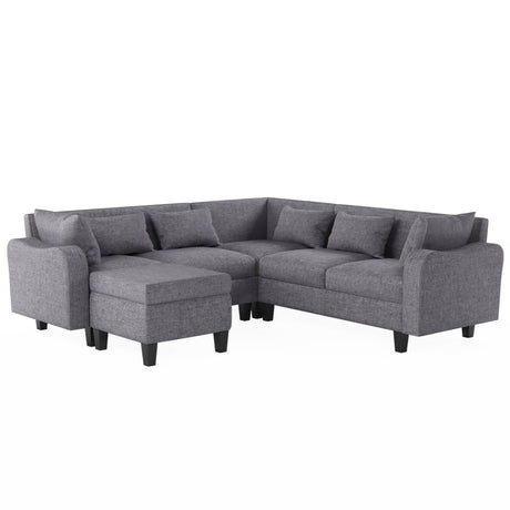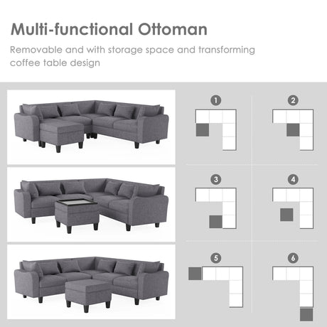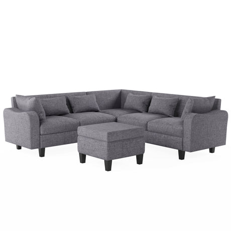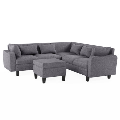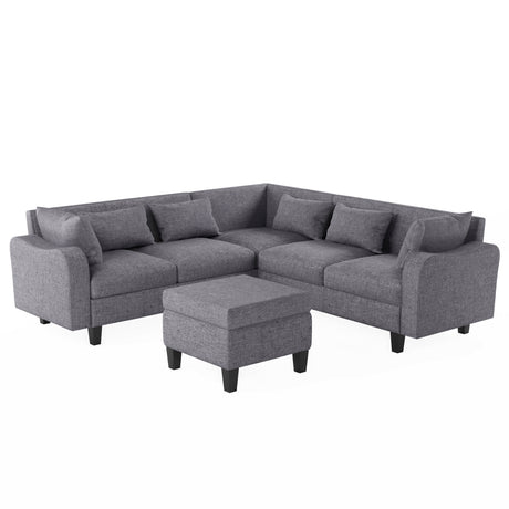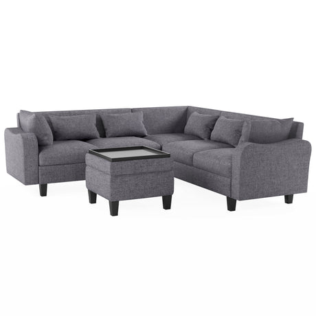 Zoey 79.75" Dark Gray Linen Convertible Sleeper Sofa with Side Pocket