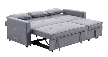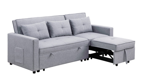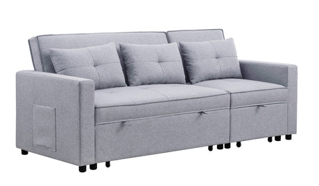 Zoey 79.75" Light Gray Linen Convertible Sleeper Sofa with Side Pocket