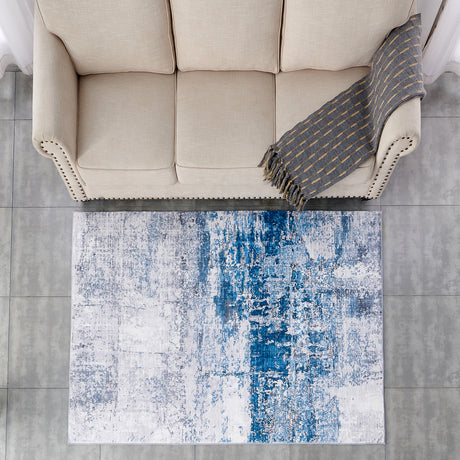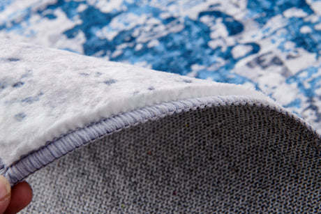 ZARA Collection Abstract Design Blue Gold Machine Washable Super Soft Area Rug