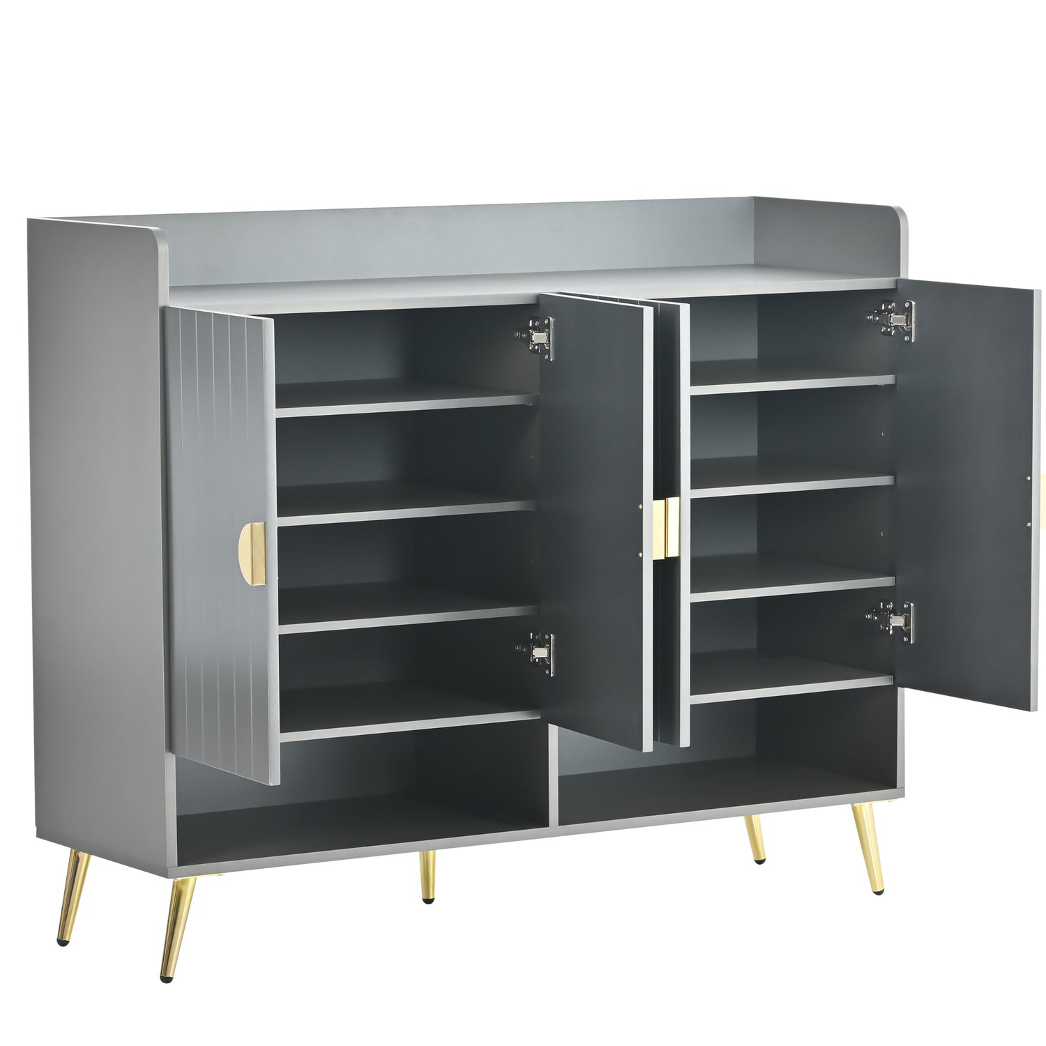 With apron design, this shoe storage cabinet is a stylish and functional furniture piece which perfectly fits any decor of your home. It is constructed with high-quality wood, providing durability and sturdiness to hold numerous pairs of shoes. The cabinet is equipped with multiple adjustable shelves or compartments, allowing you to neatly organize and store your shoe collection. The apron design adds a unique flair to the cabinet, making it a versatile choice for various interior design styles. Whether it's placed in an entryway, bedroom, or closet, this modern shoe storage cabinet blends seamlessly into any space.
