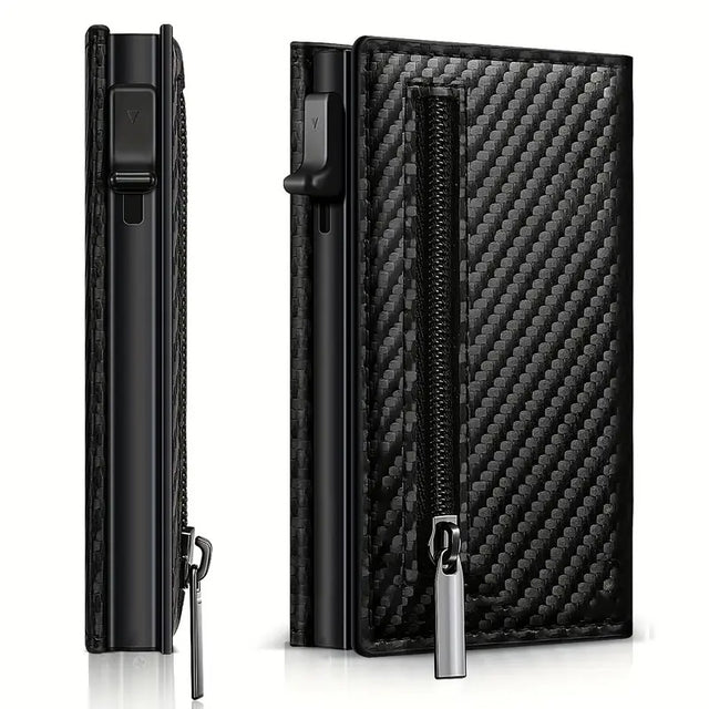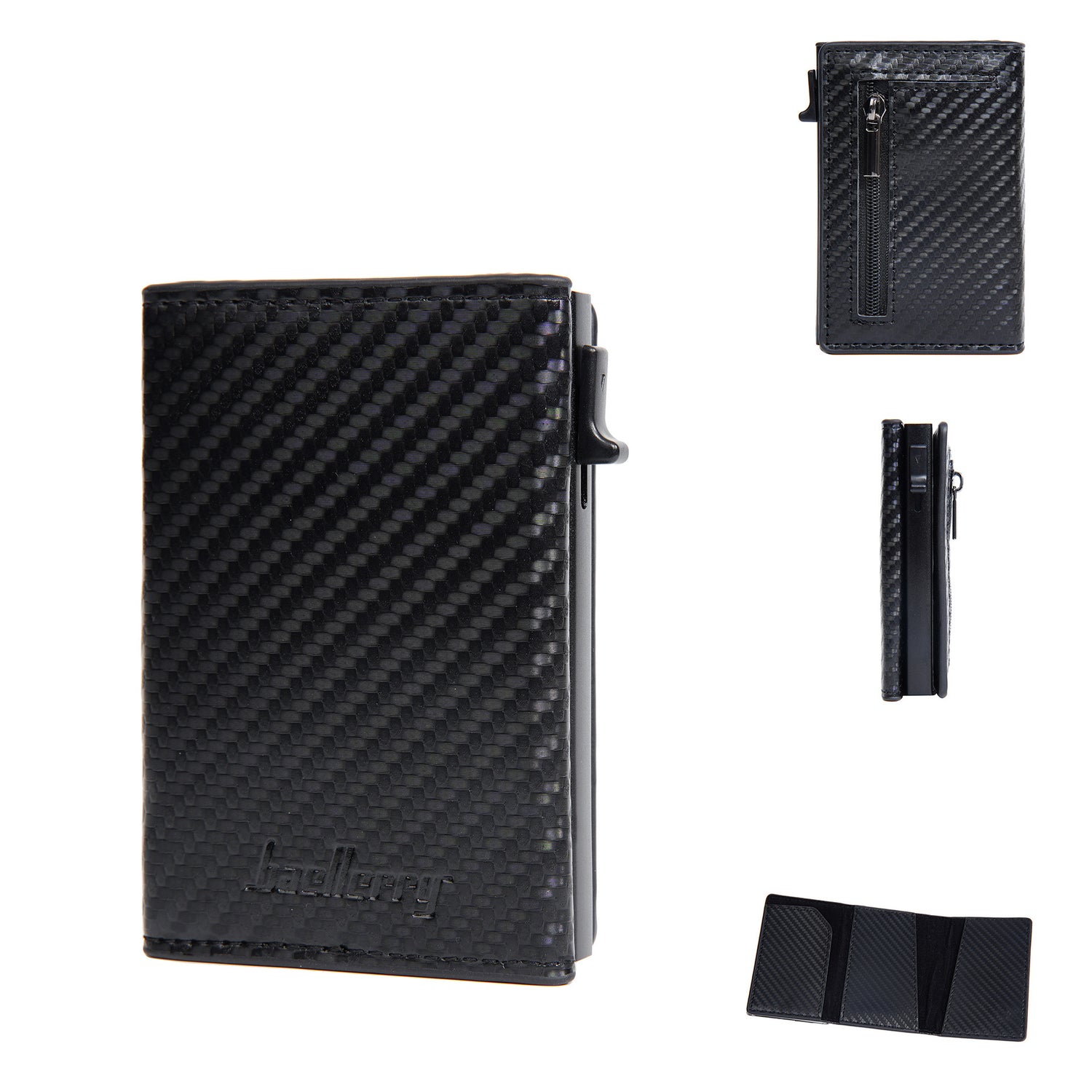 New RFID Cowhide Passport Holder Wallet Passport Bag Protective Cover Carbon Fiber Pattern Anti-theft Brush Wallet Automatic Pop-up Zipper First Layer Genuine Leather Men's Wallet - Black is backordered and will ship as soon as it is back in stock.