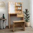 Vanity Desk Set Stool & Dressing Table with LED Lighting Mirror Drawer and Compartments Modern Wood Cosmetic Table Chest of Drawers Nature Color