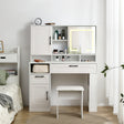 • Makeup Table with LED Light Mirror: This vanity desk features a large LED mirror with 3 color modes (warm, natural, and cool), which is safer than ordinary light bulbs. You can change the color mode by pressing the touch switch or adjust the brightness by long pressing the touch switch.