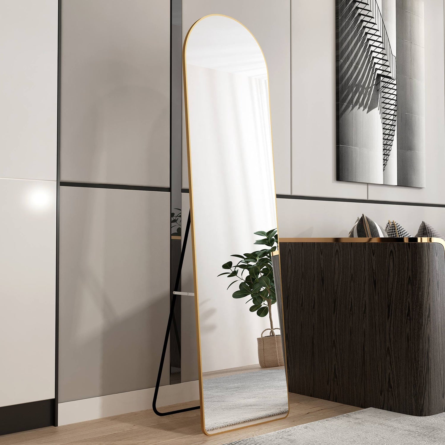 The third generation floor mounted full length rearview mirror. Aluminum alloy metal frame arched wall mirror, bathroom makeup mirror, clothing store, wall mounted. Gold 60 "*16.5"W115158172 is backordered and will ship as soon as it is back in stock.