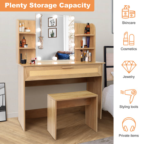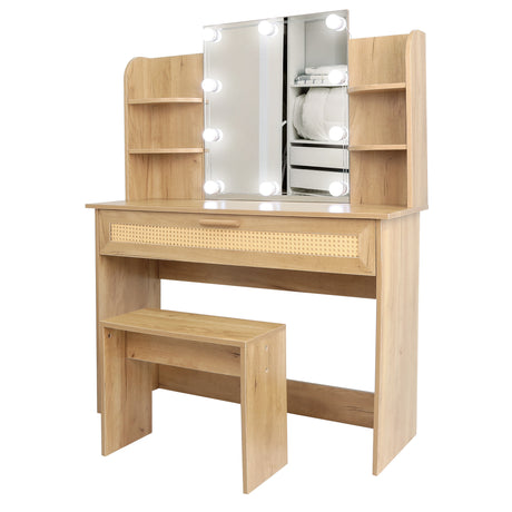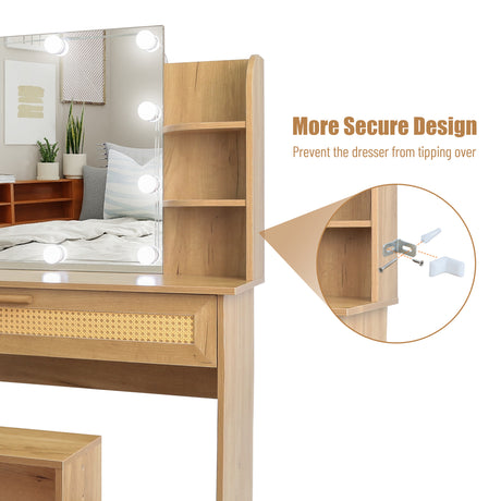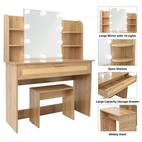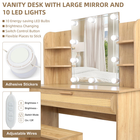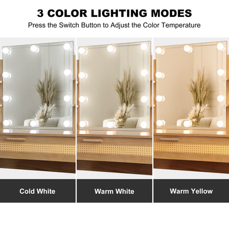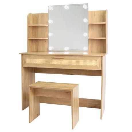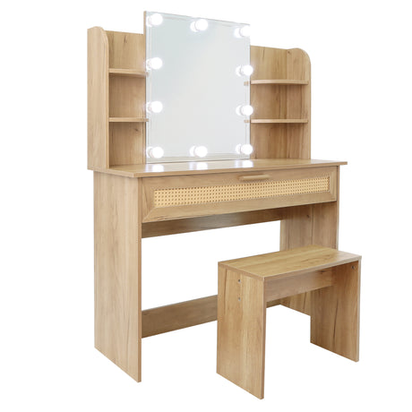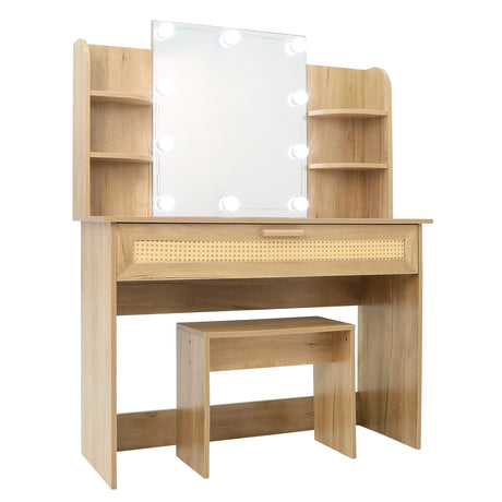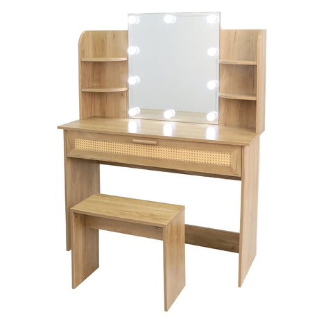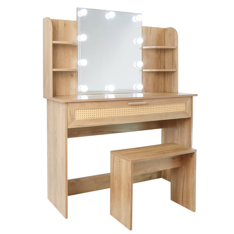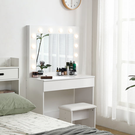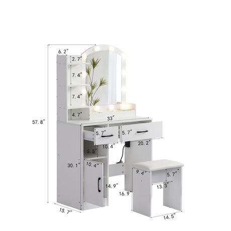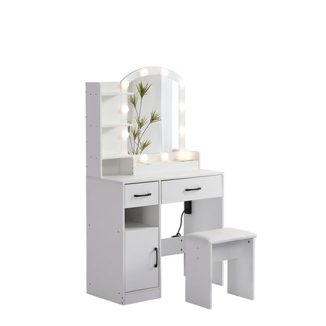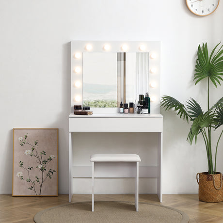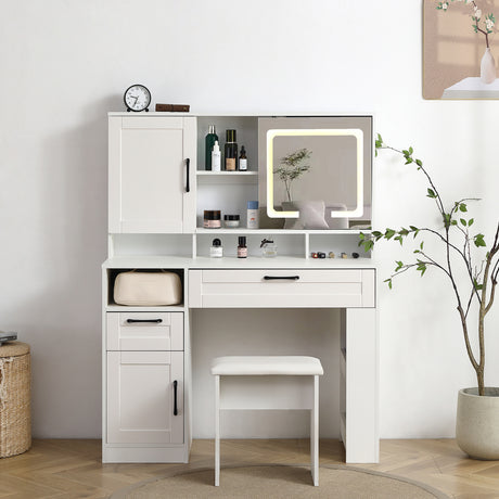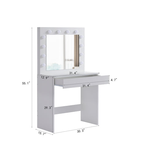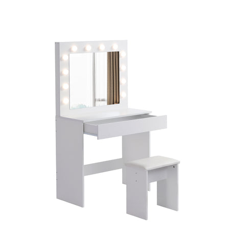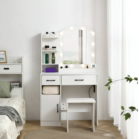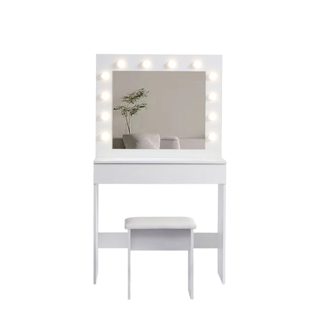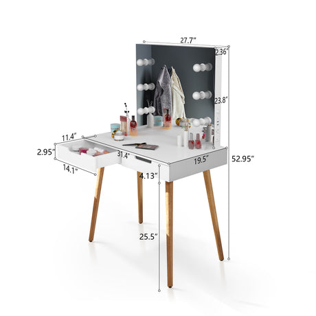 Wooden Vanity Table Makeup Dressing Desk with LED Light,dressing table with USB port,White