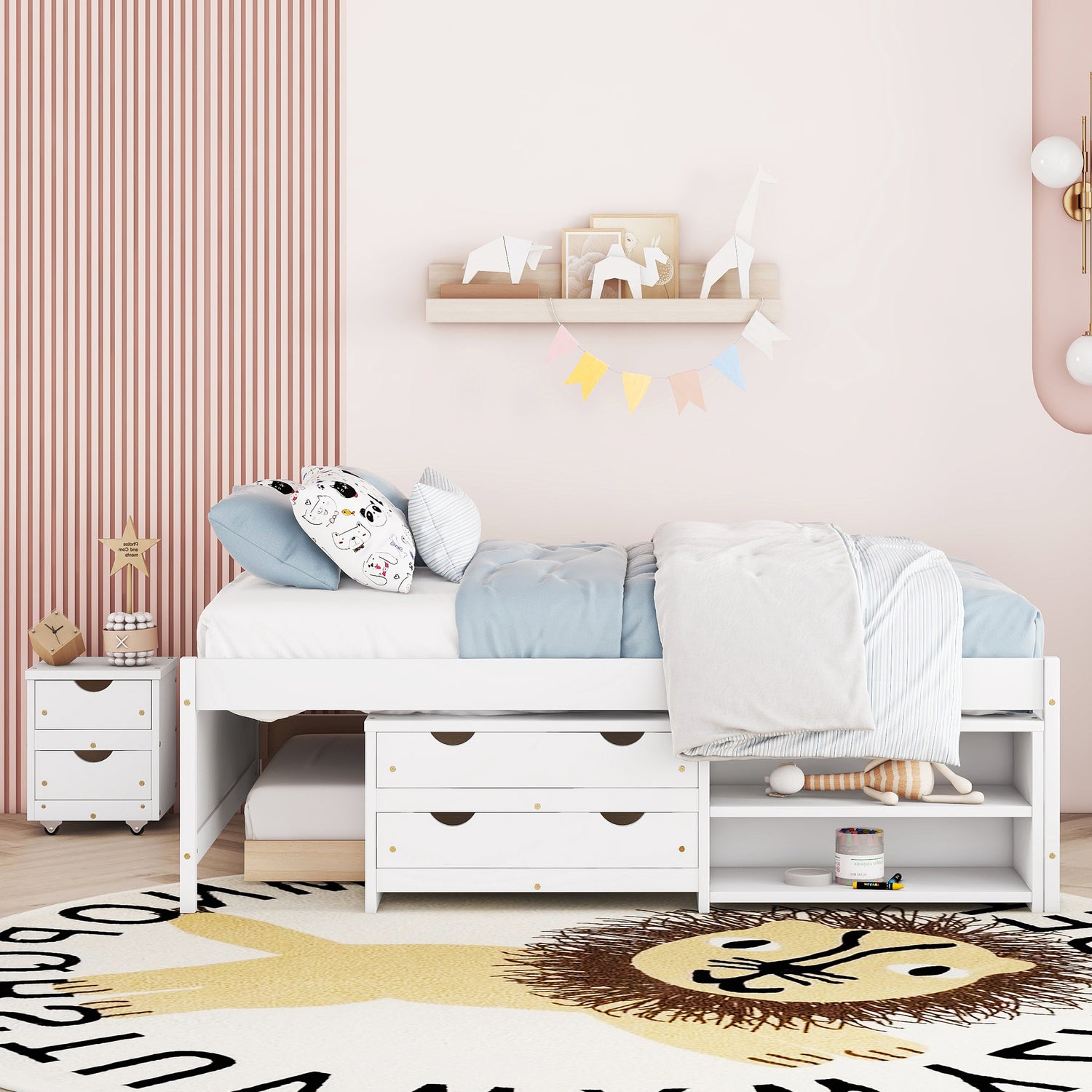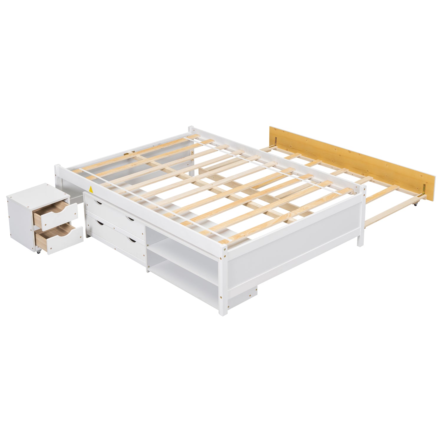 Versatile Full Bed with Trundle,Under bed Storage Box and Nightstand .White