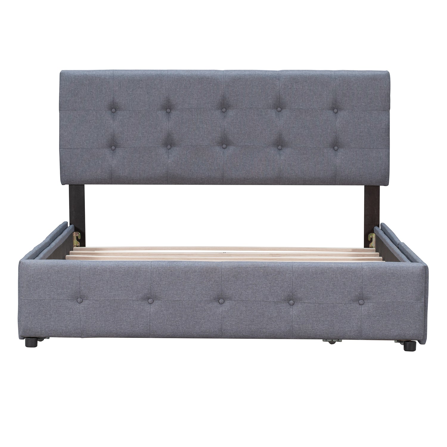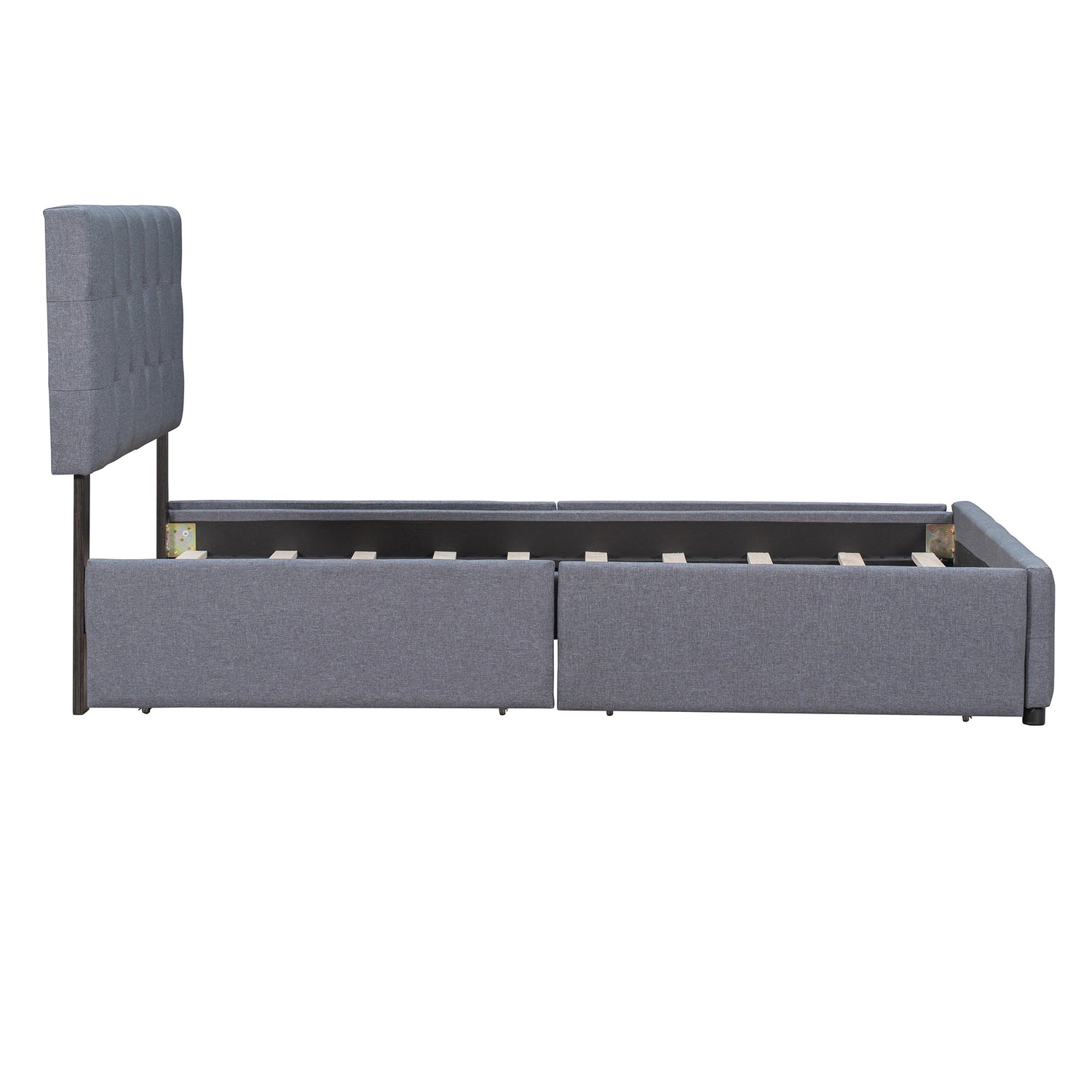 Upholstered Platform Bed with Classic Headboard and 4 Drawers, No Box Spring Needed, Linen Fabric, Queen Size Dark gray(OLD SKU :LP000114AAE)