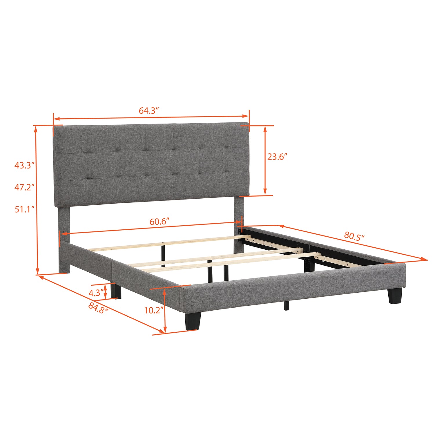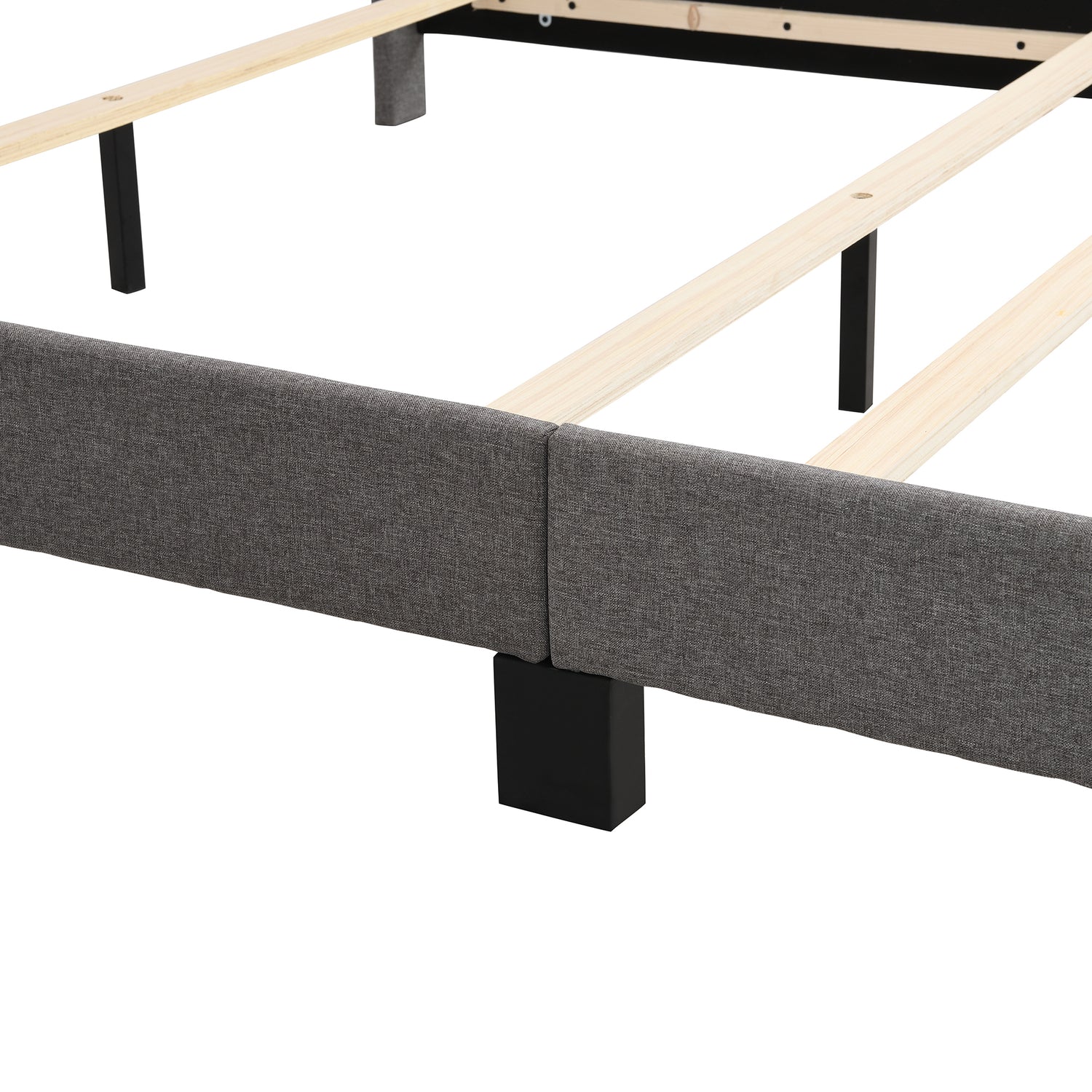 - [A Box Spring is required] This queen-sized bed frame comes with four wooden slats, and as such this bed requires a box spring mattress. Mattress is also not included. Headboard is included as a comfy linen fabric backrest that brings you and your partner a cozy feeling.