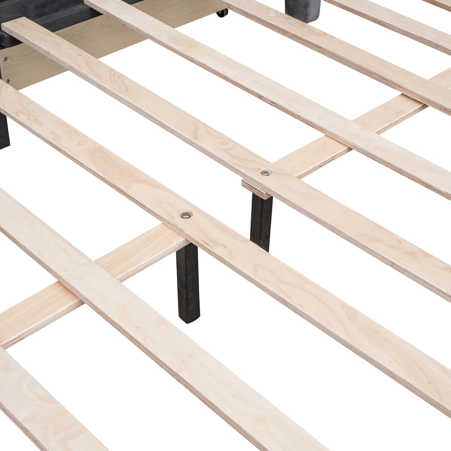 Upholstered Platform Bed with Stud Trim Headboard and Footboard and 4 Drawers No Box Spring Needed, Velvet Fabric, Queen Size (Gray) is backordered and will ship as soon as it is back in stock.