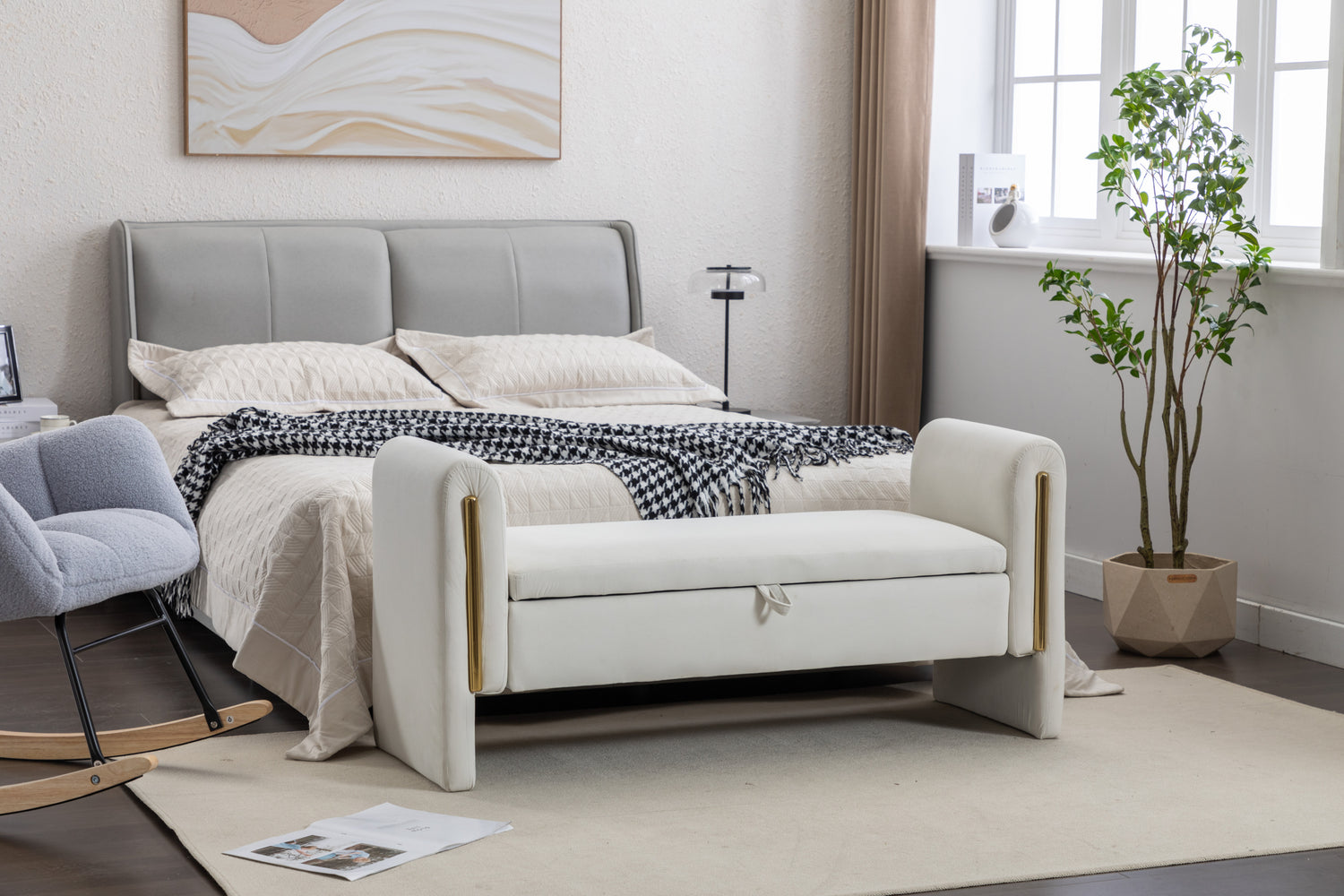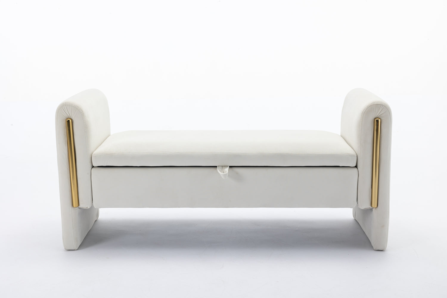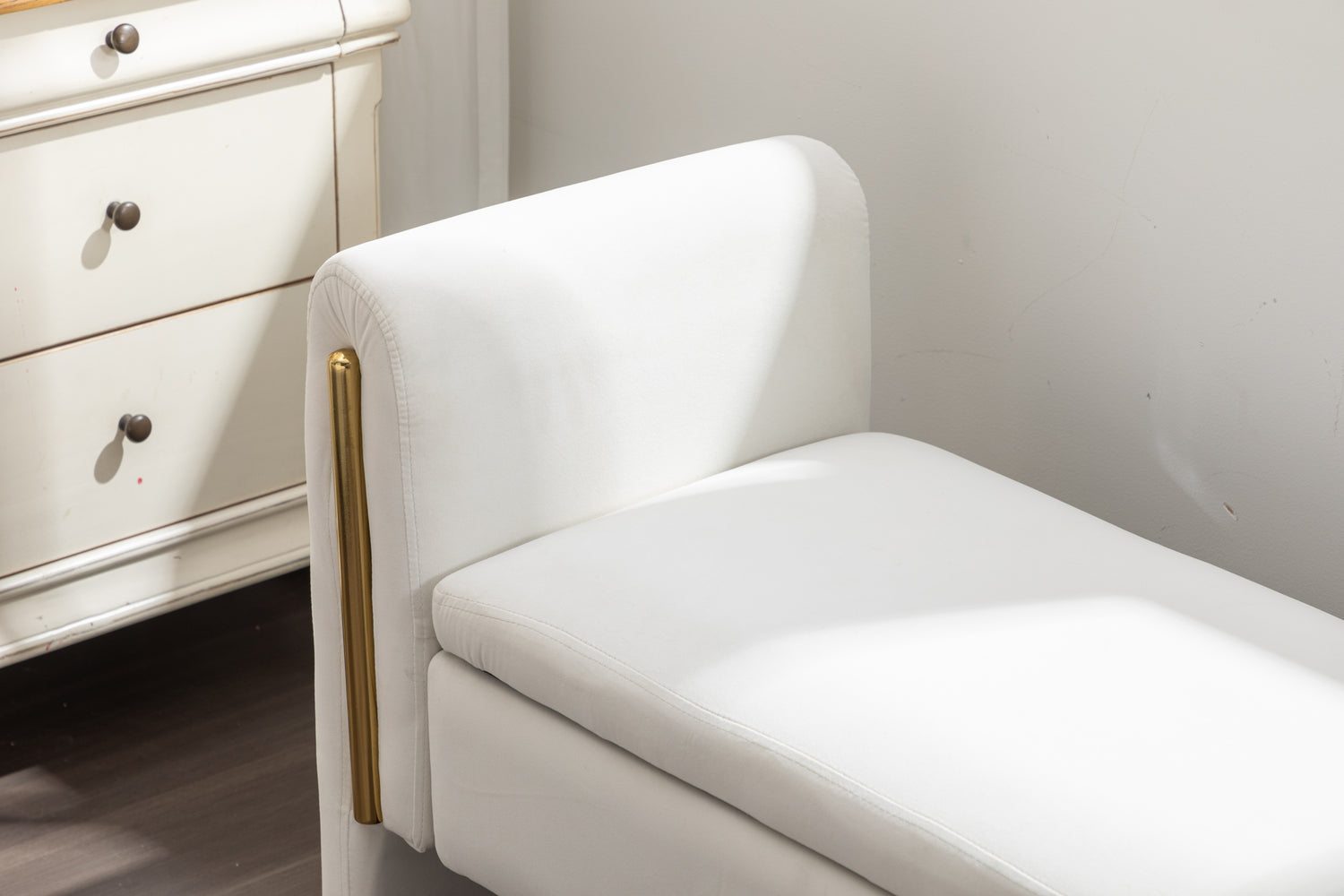 Velvet Fabric Storage Bench Bedroom Bench With Gold Metal Trim Strip
