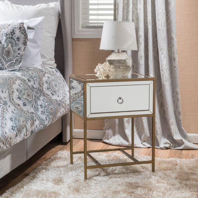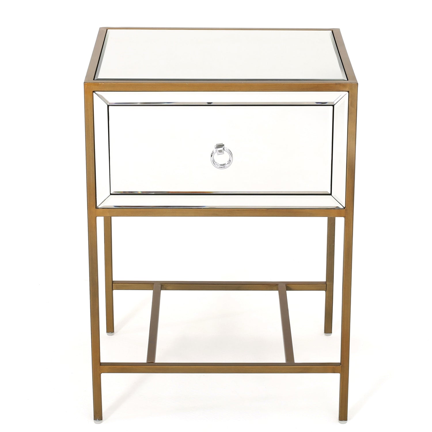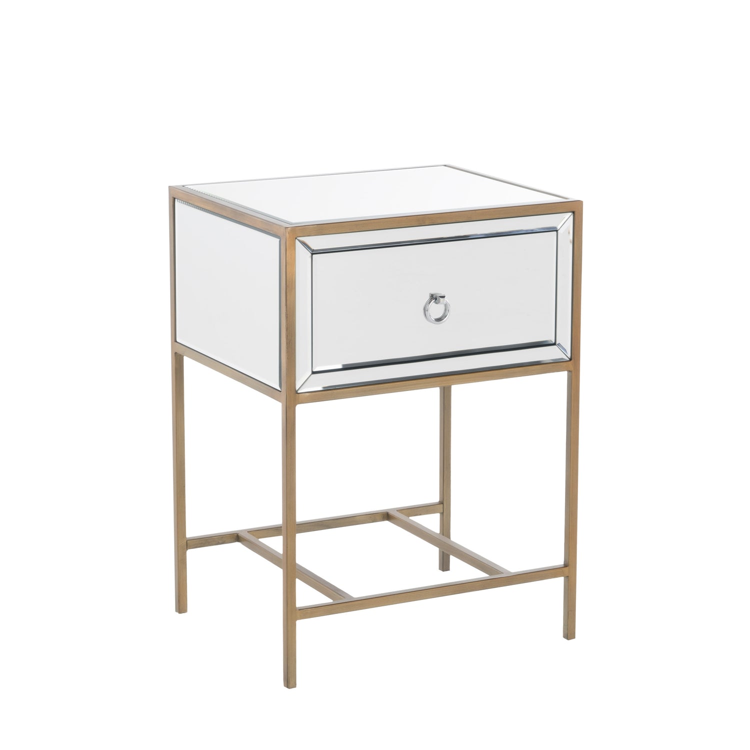 - Enjoy this stylish single drawer side table in any and every room where natural light is the chosen lighting source. This side table features a winning finish and the mirror plates on the majority of the table give a radiant finish in the light.