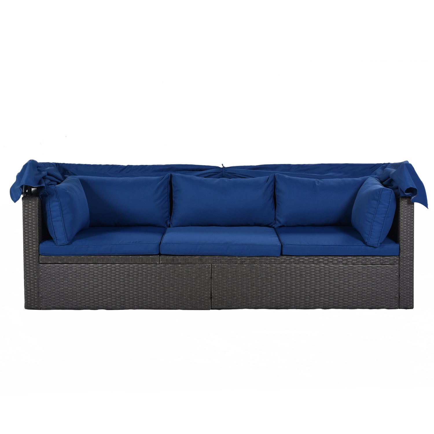 U_Style Outdoor Patio Rectangle Daybed with Retractable Canopy, Wicker Furniture Sectional Seating with Washable Cushions, Backyard, Porch(As same as WY000263AAE)