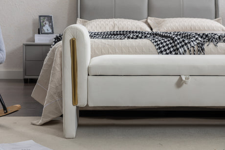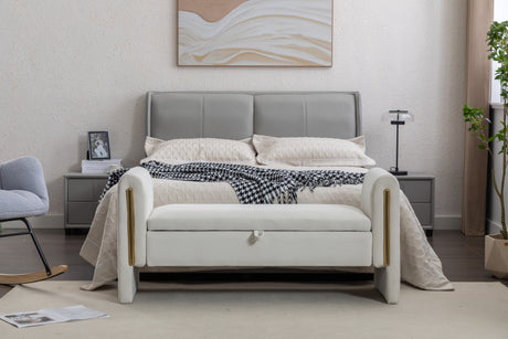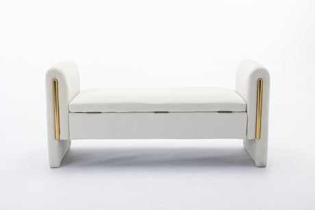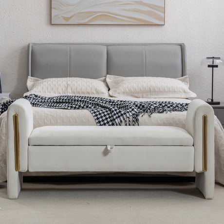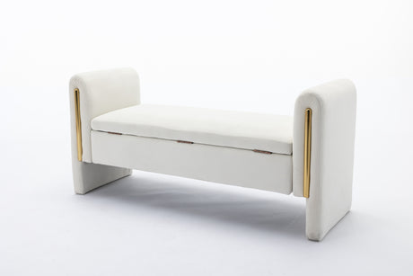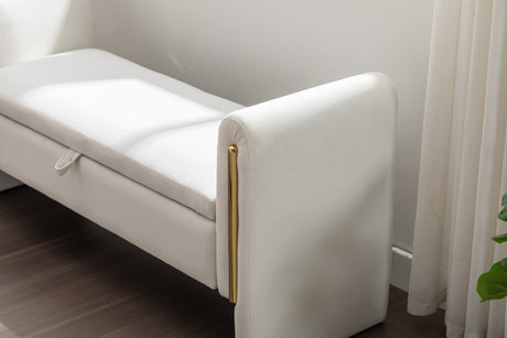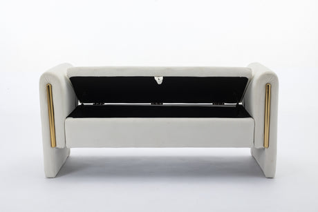 Velvet Fabric Storage Bench Bedroom Bench With Gold Metal Trim Strip
