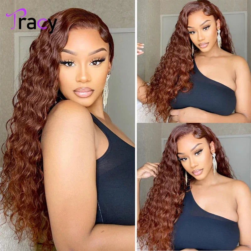 Tracy Hair Wear and Go Glueless Wigs Human Hair Reddish Brown Loose Deep Lace Front Wig Human Hair Red Brown Lace Front Wig