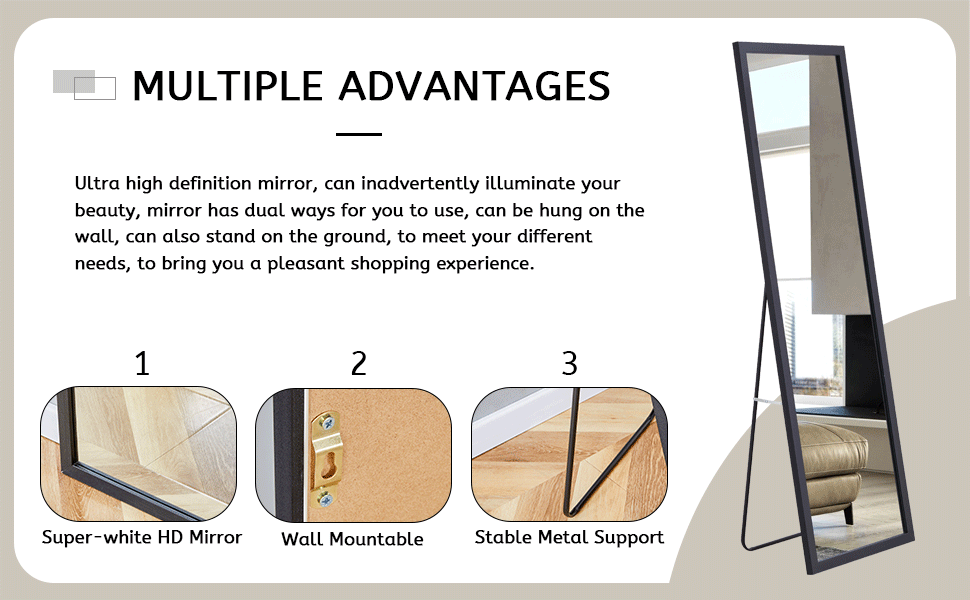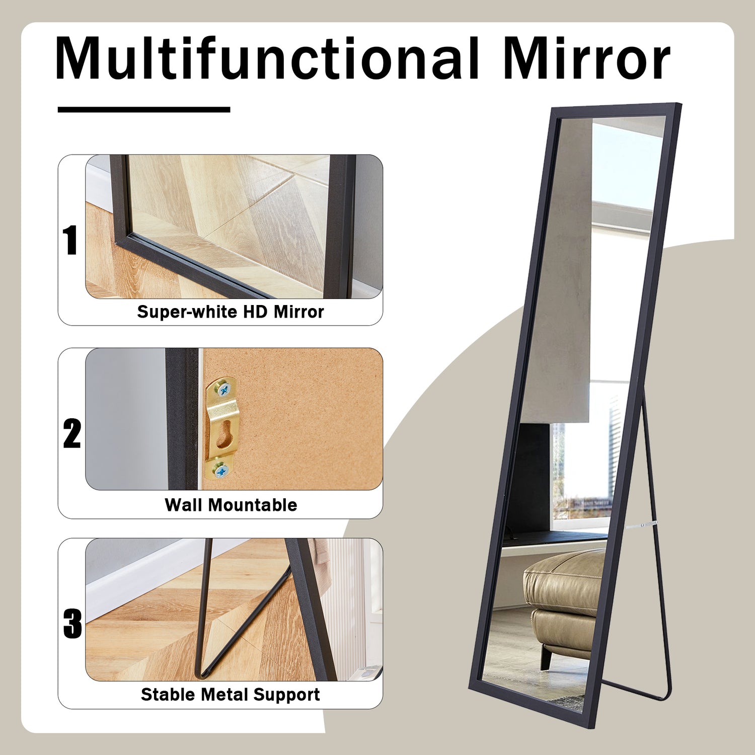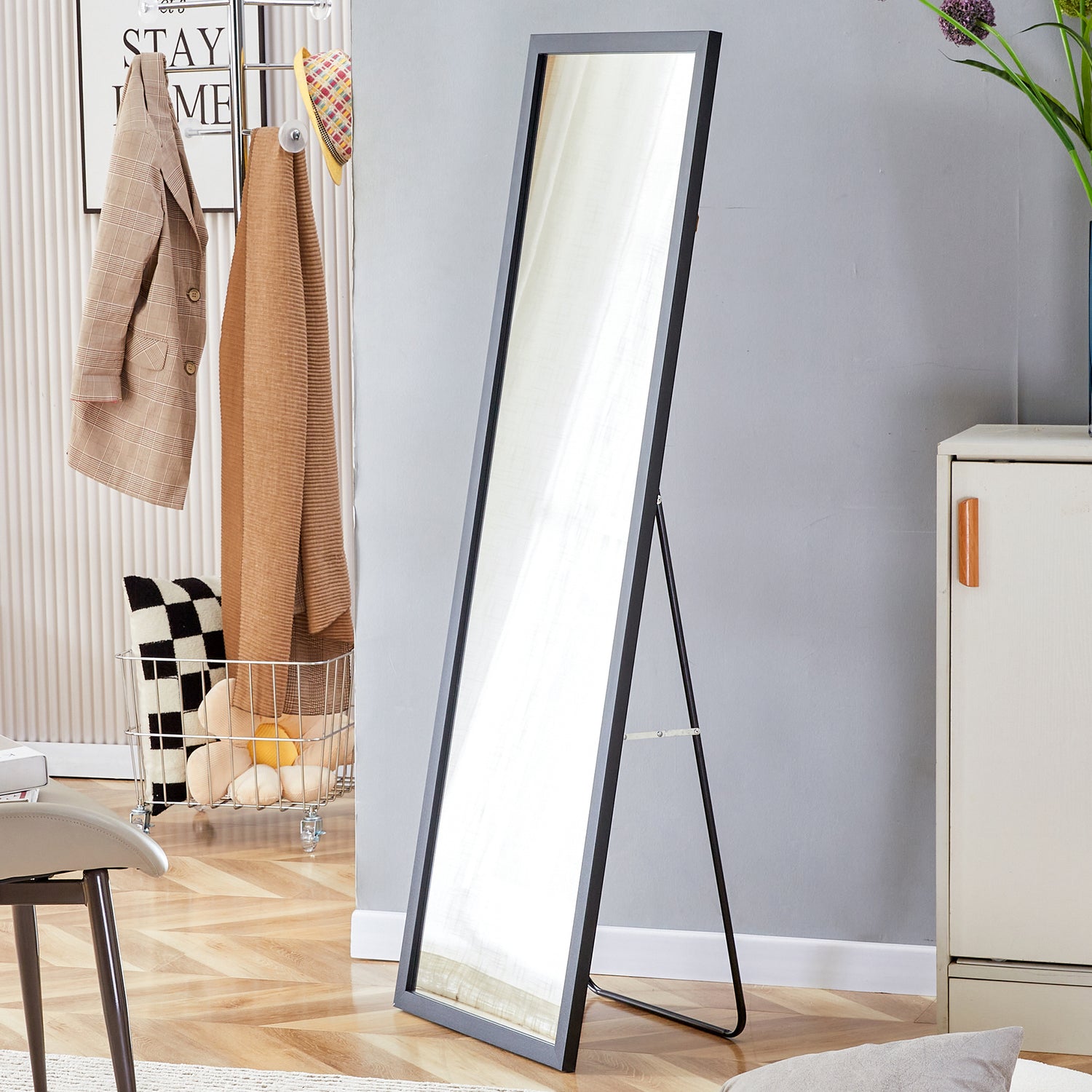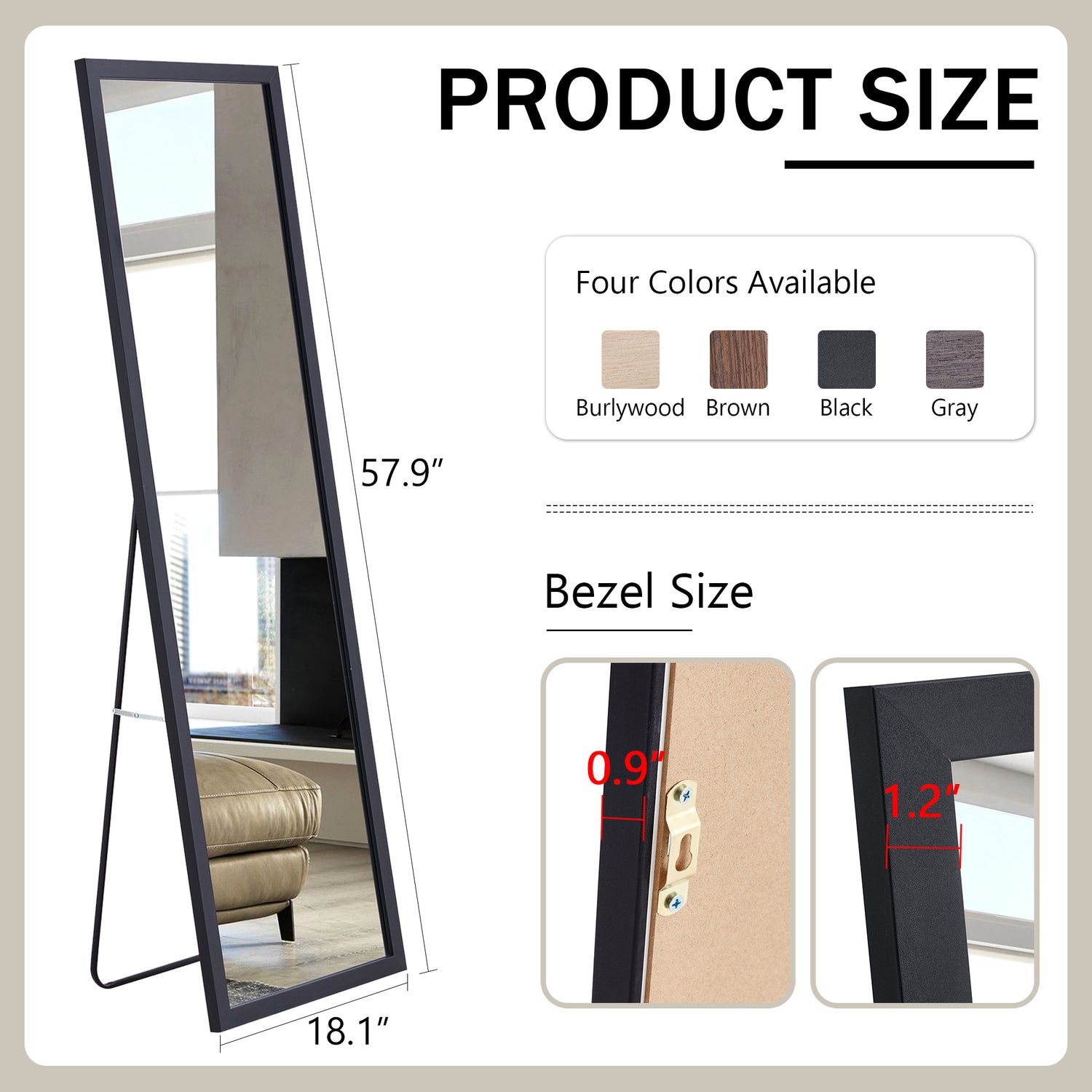 Third generation, black thick wooden frame full body mirror, large floor standing mirror, dressing mirror, decorative mirror, suitable for bedrooms, living rooms, clothing stores57.9"*18.1" is backordered and will ship as soon as it is back in stock.
