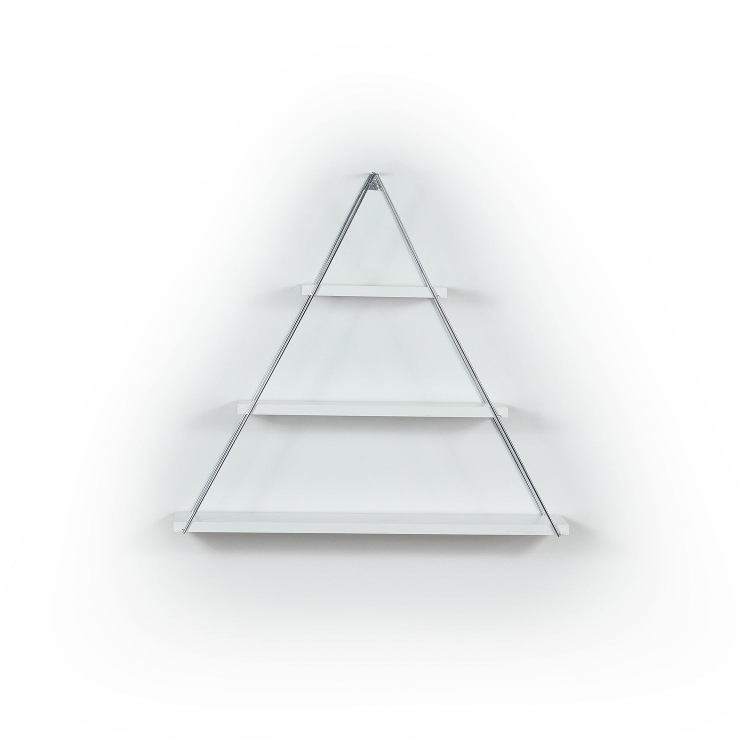 Moset Floating Wall Decor Wall Mounted Rustic Decorative Hanging Metal Bracket Triangle Shelf for Books, White/Chrome is backordered and will ship as soon as it is back in stock.