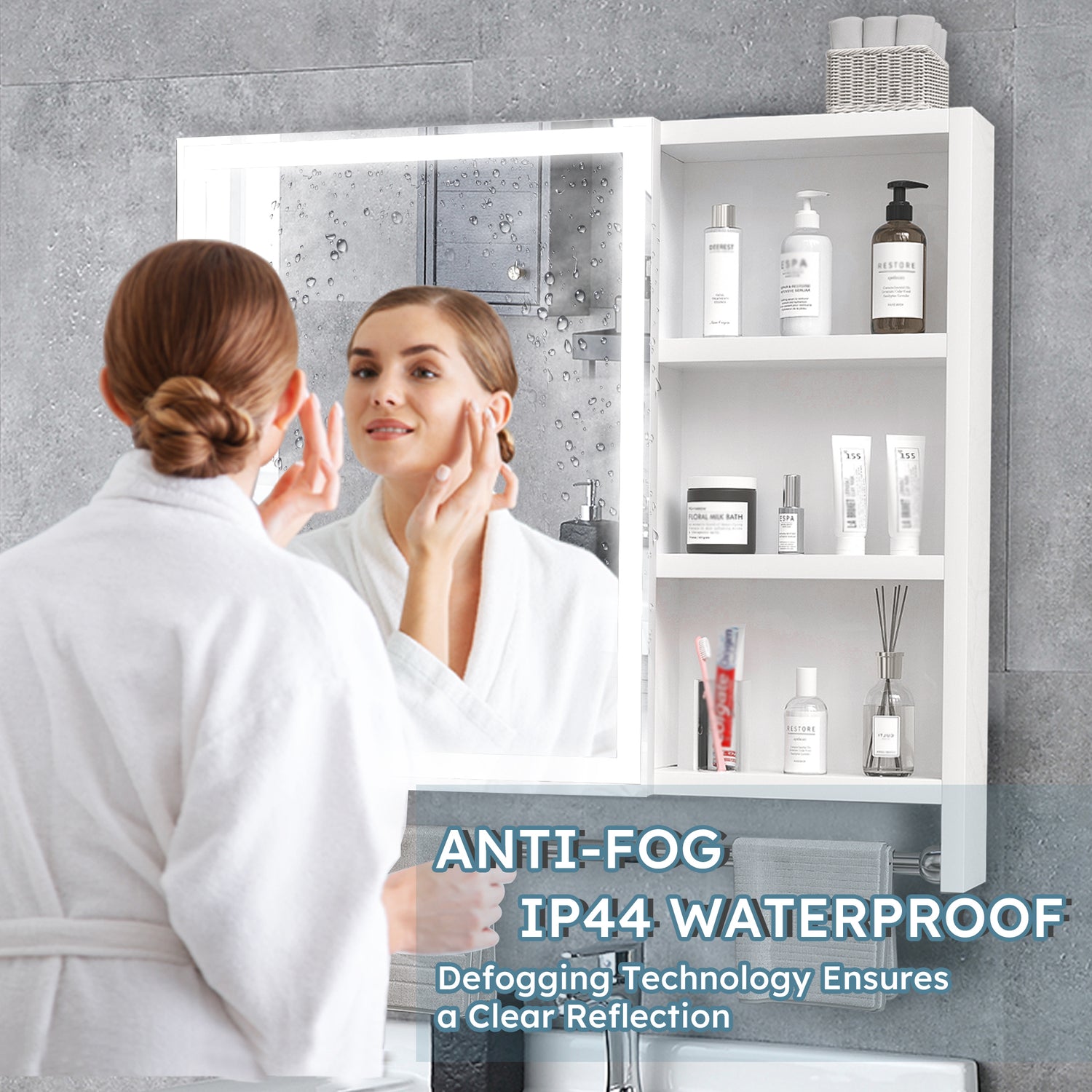 Modern 32x28inches bathroom cabinets, medicine cabinets with mirrors and LED lights, bathroom lockers with multilevel storage compartments and towel rails