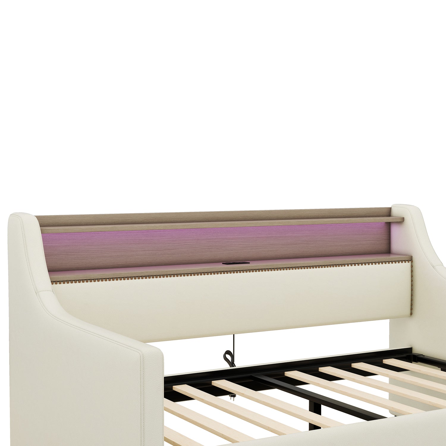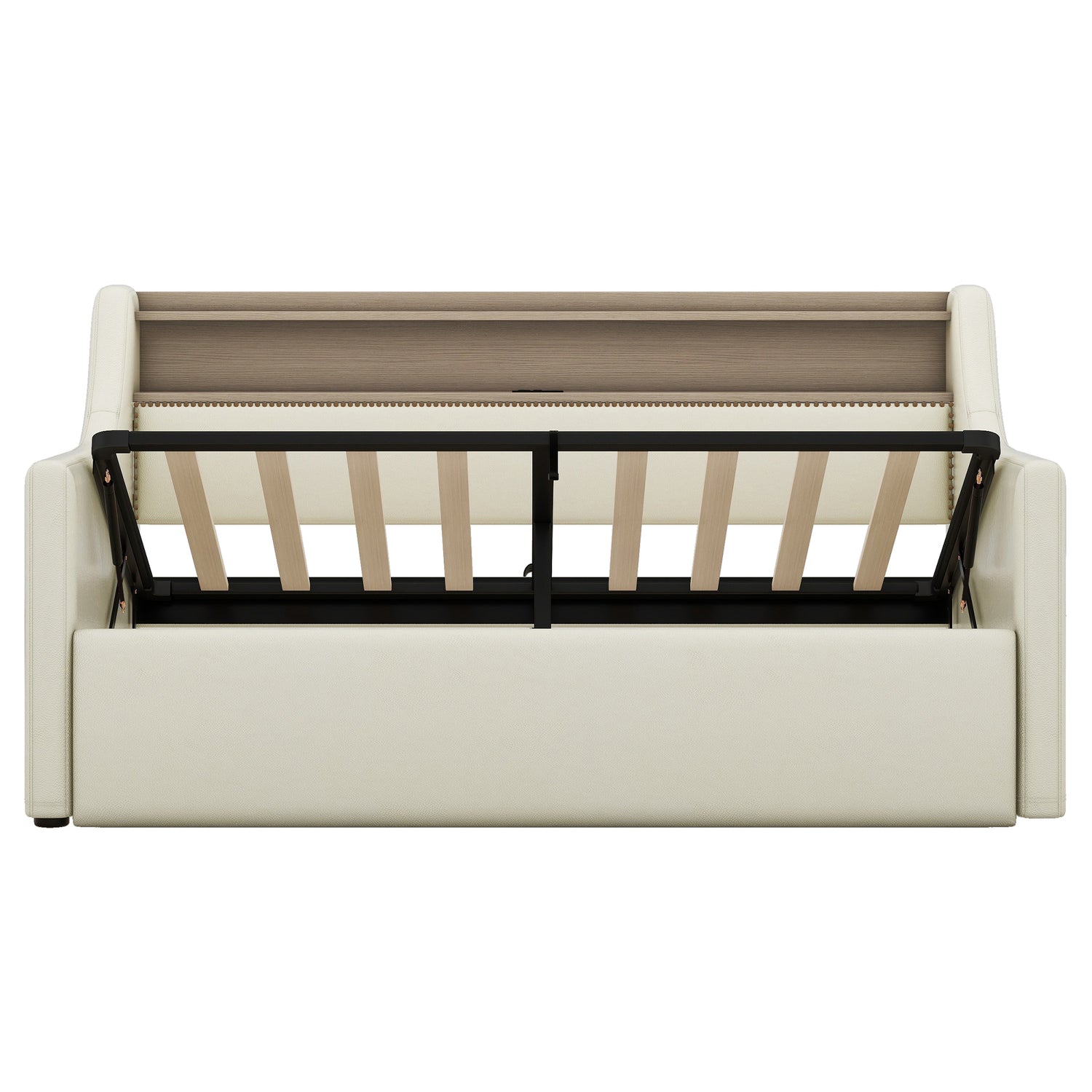 • Storage Headboard--The headboard storage provides you with an extra place to store magazines, phones, beloved photos and decorations which is very practical. Handmade bronze nail head trim make this twin daybed more stylish and classic.