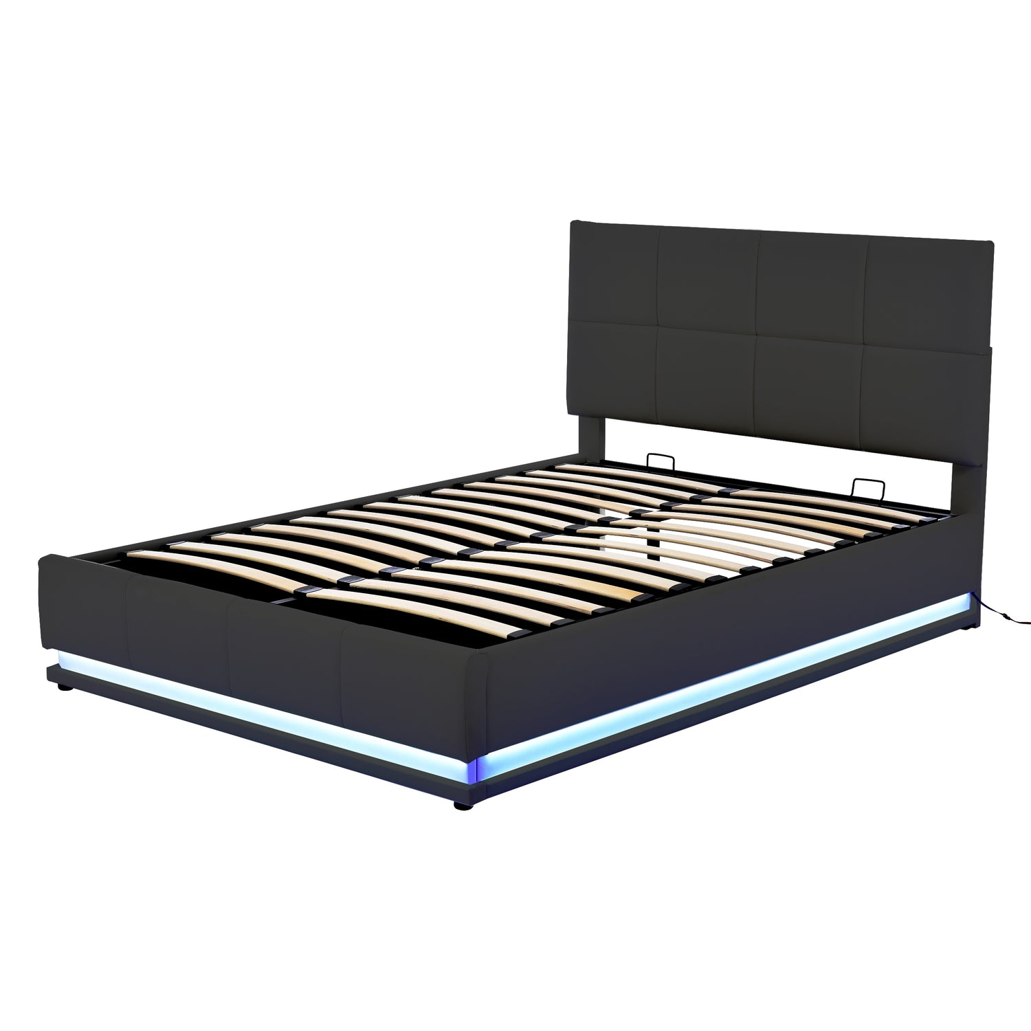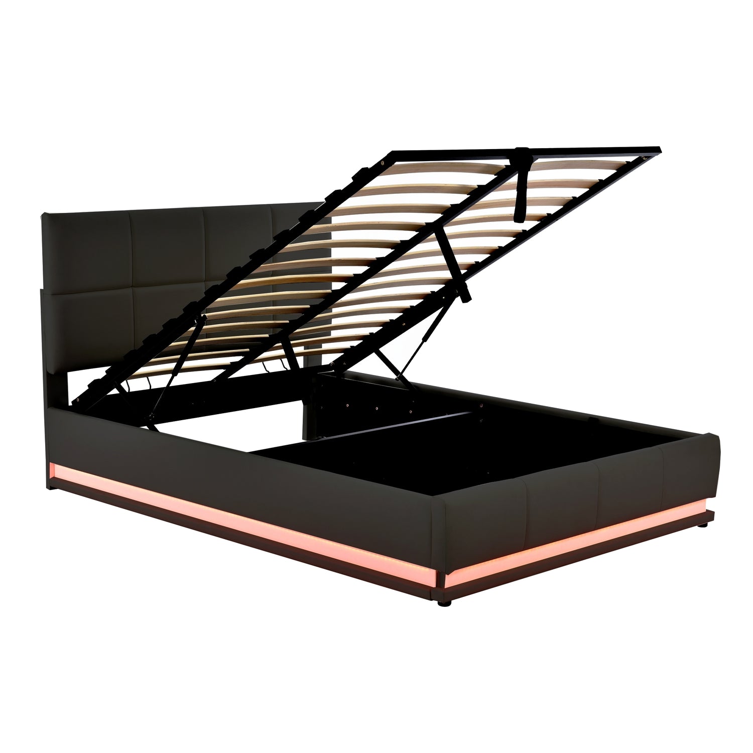 Tufted Upholstered Platform Bed with Hydraulic Storage System,PU Bed with LED Lights and USB charger