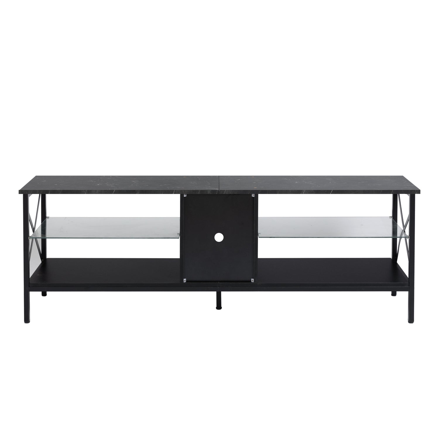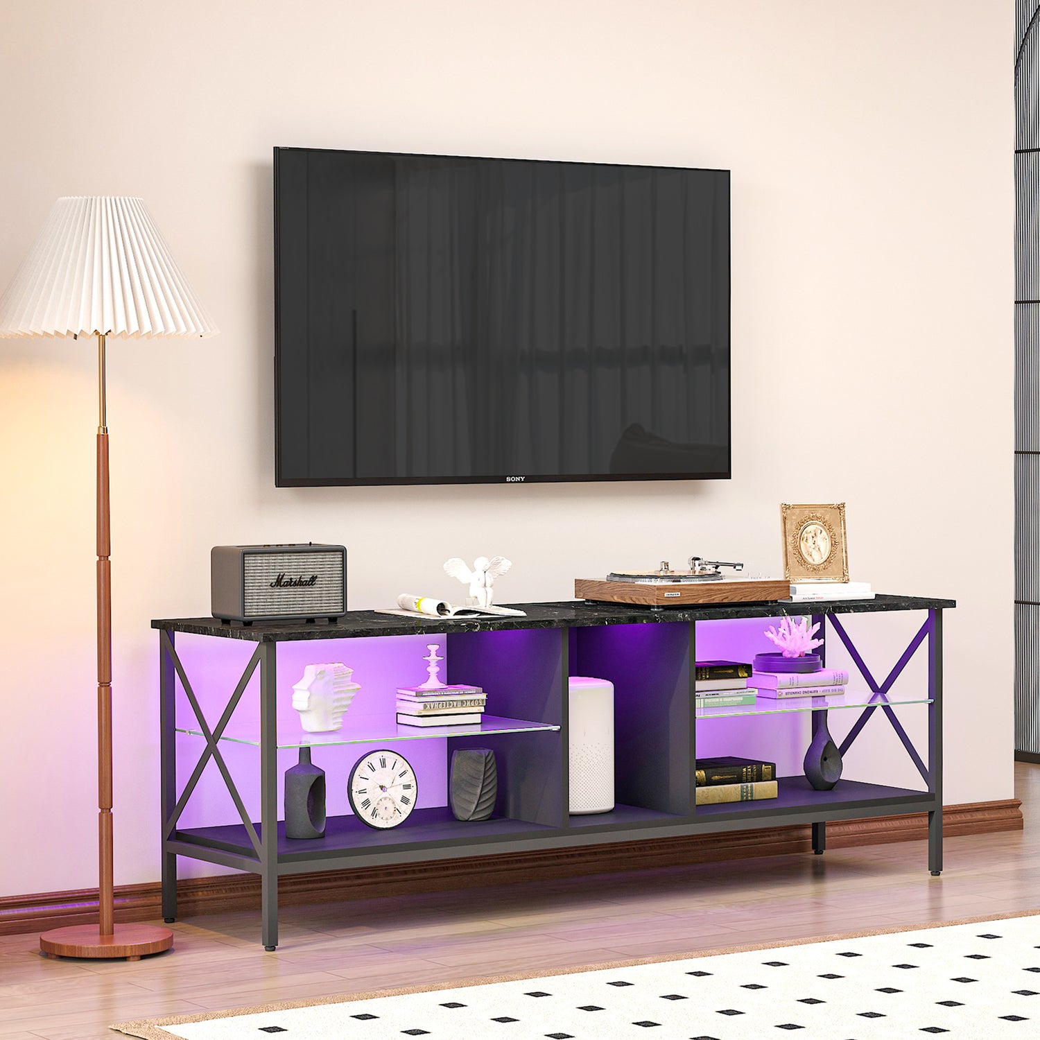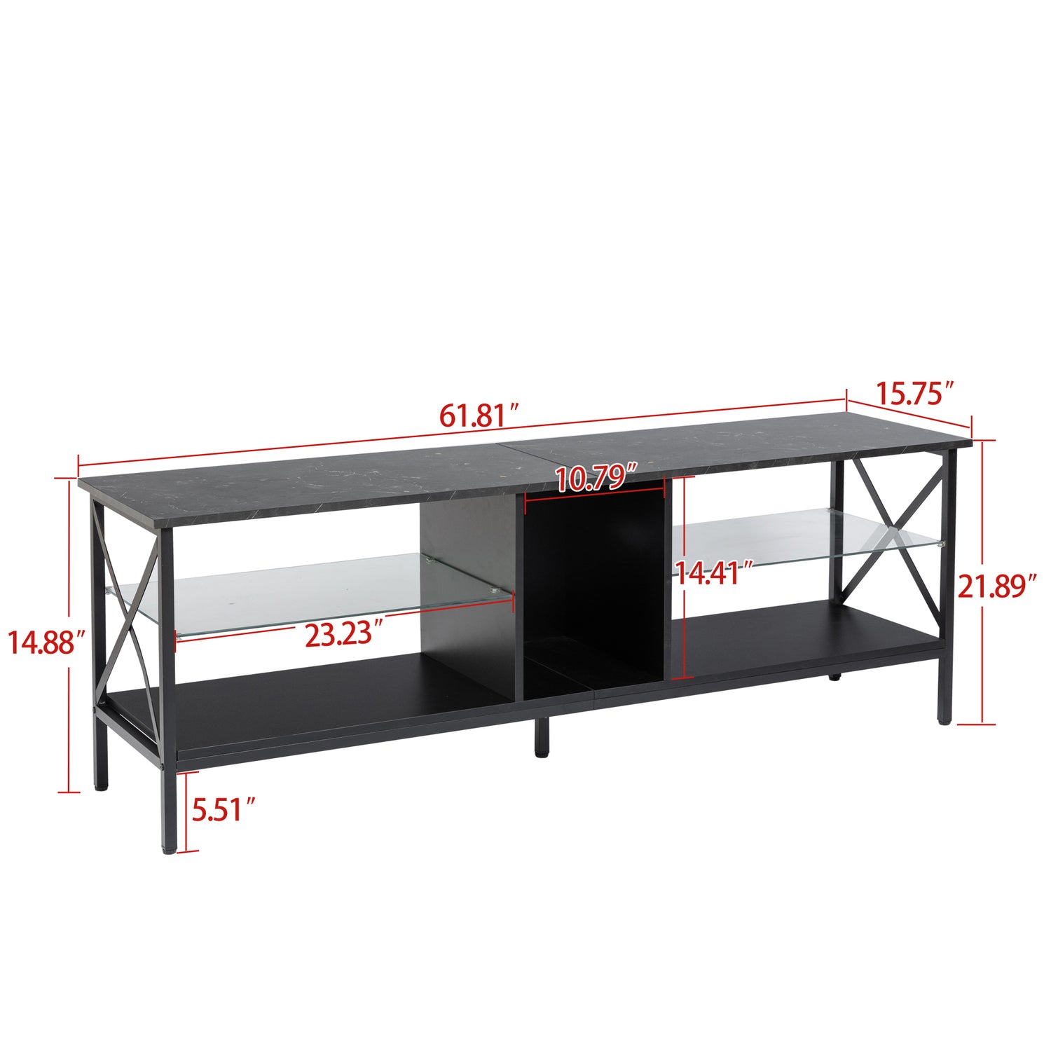 TV stand,Iron TV cabinet,entertainment center, TV set, media console, with LED lights, remote control,toughened glass stand,can be placed in the living room, bedroom, color:black with marble texture