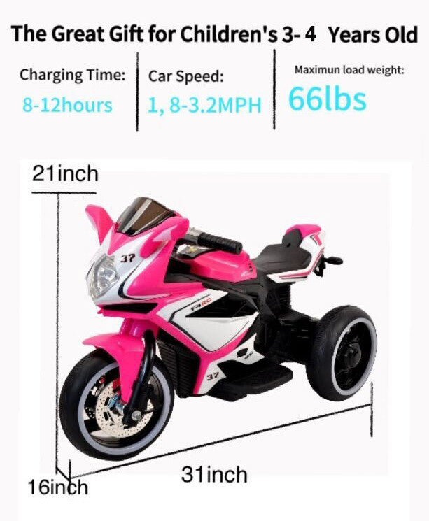 kids Ride On motorcycle Specifications: kids motorcycle Size:31*16*21(in)Package size:30*10*15