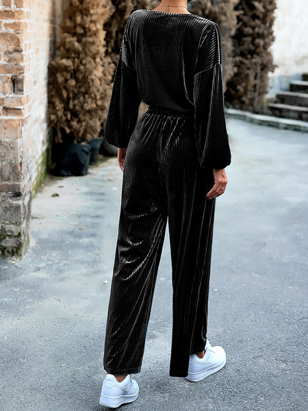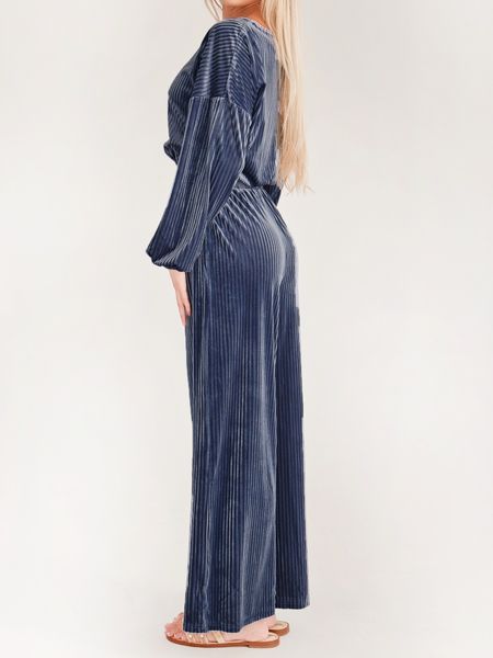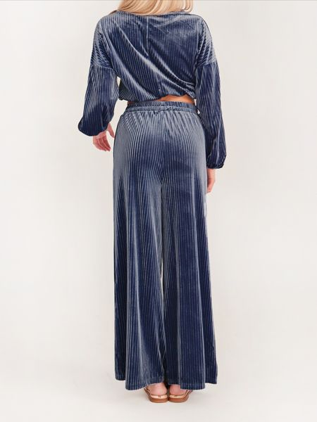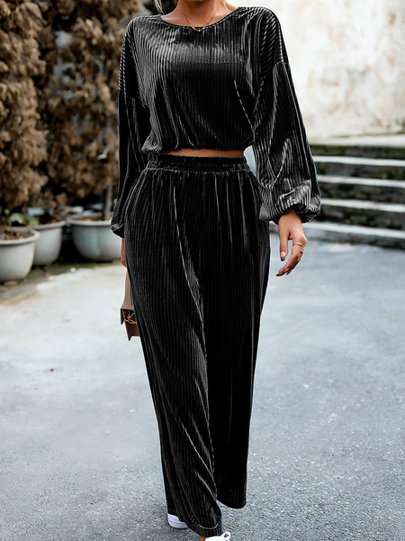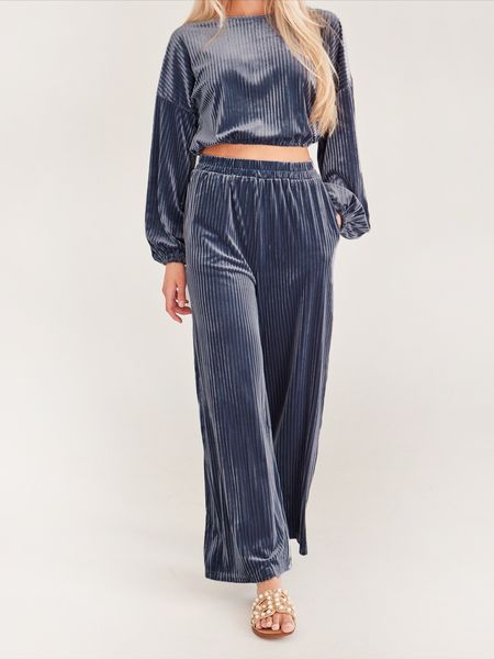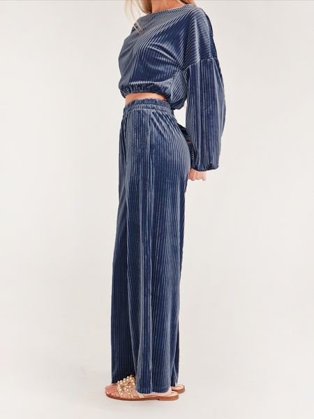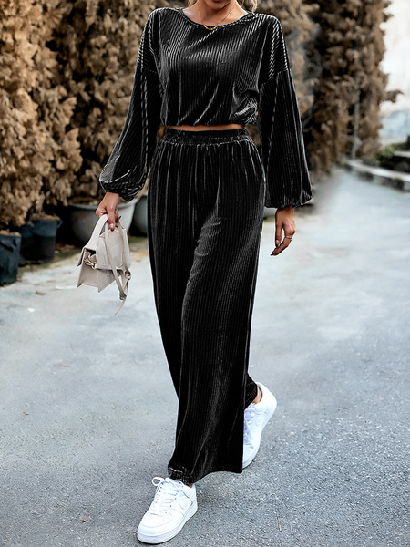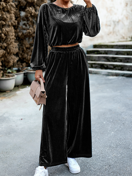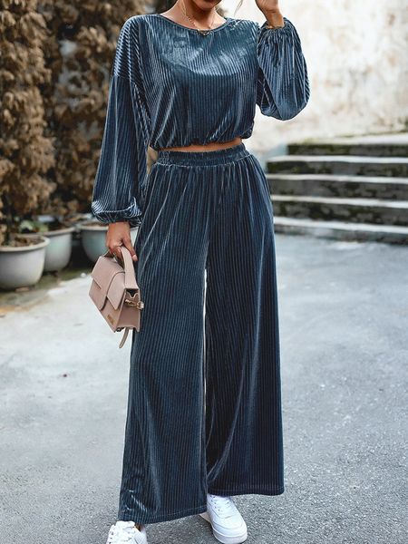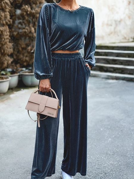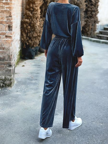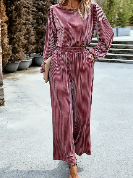Women's Striped Velvet Long Sleeve Crop Top and Wide Leg Two-piece Set HWWX62YZAR