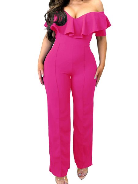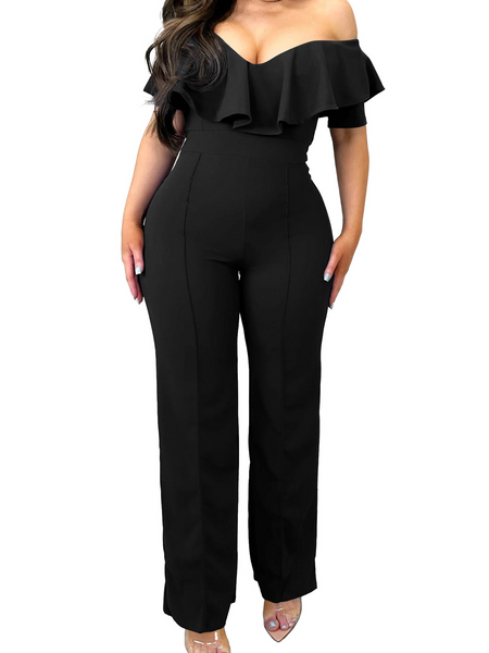 V-neck Lotus Leaf Edge Sexy Waist-collecting Jumpsuit