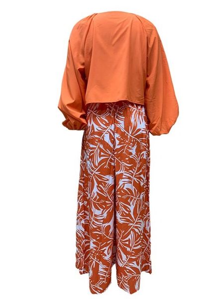 Autumn women's printed pants V-neck long-sleeved two-piece set HWFQRVR6WA - M / orange is backordered and will ship as soon as it is back in stock.