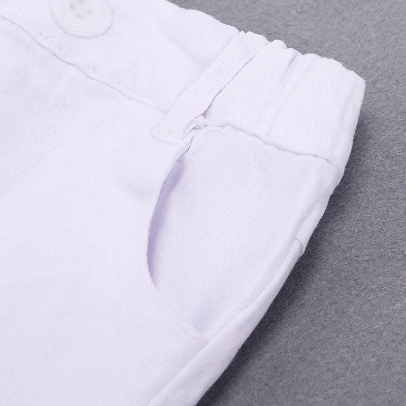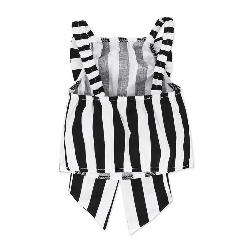 New Baby Girls Fashion Set Stripe Camisole Bow Tops+White Hole Denim Pants Kids 2 Pieces Outfits Birthday Party Children Clothes