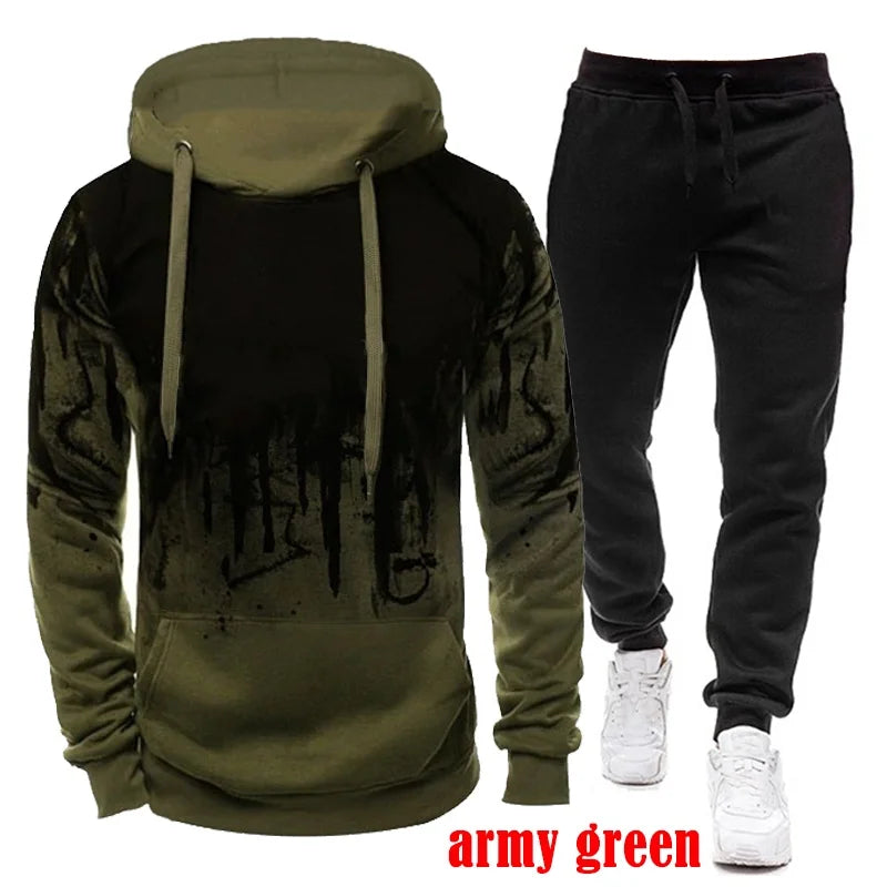 New Fashion Men's Cotton Camouflage Hoodies and Pants Sets Casual Hooded Tracksuits Outdoor Warm Sport Suits
