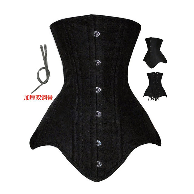 Women Cotton Double Steel Boned Waist Cincher With Crotch Wrap Court Corset Trimmer Belt Adjustable Tummy Tuck Girdle Belly Con